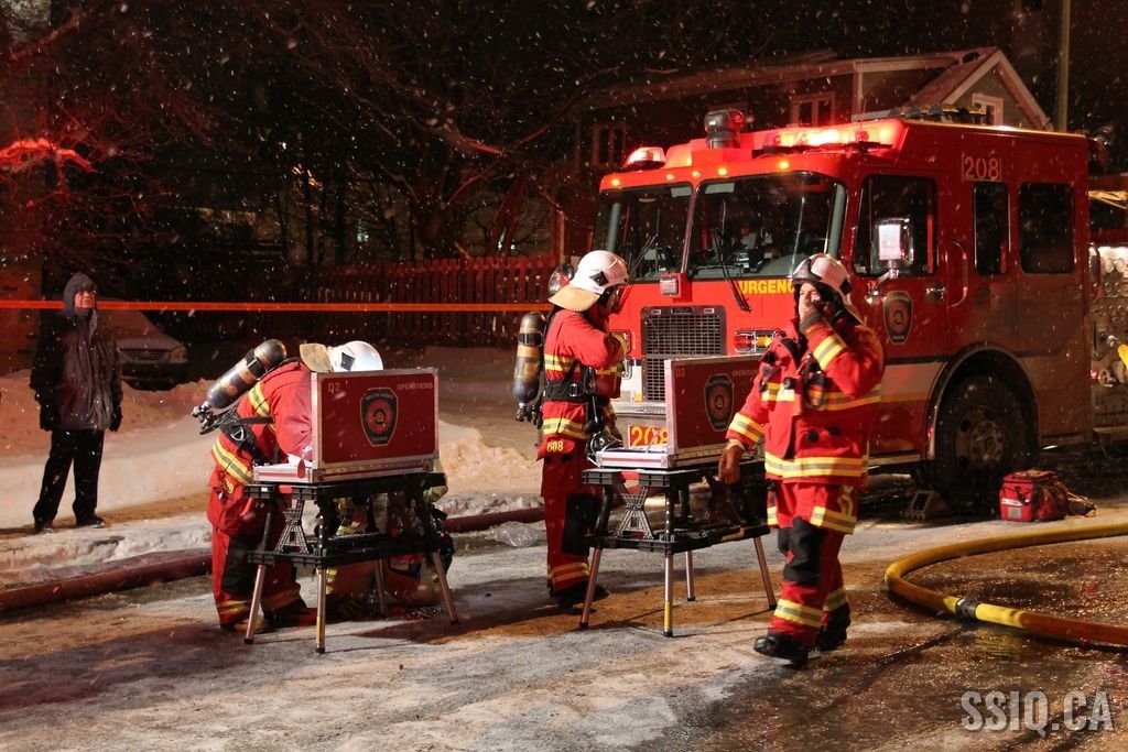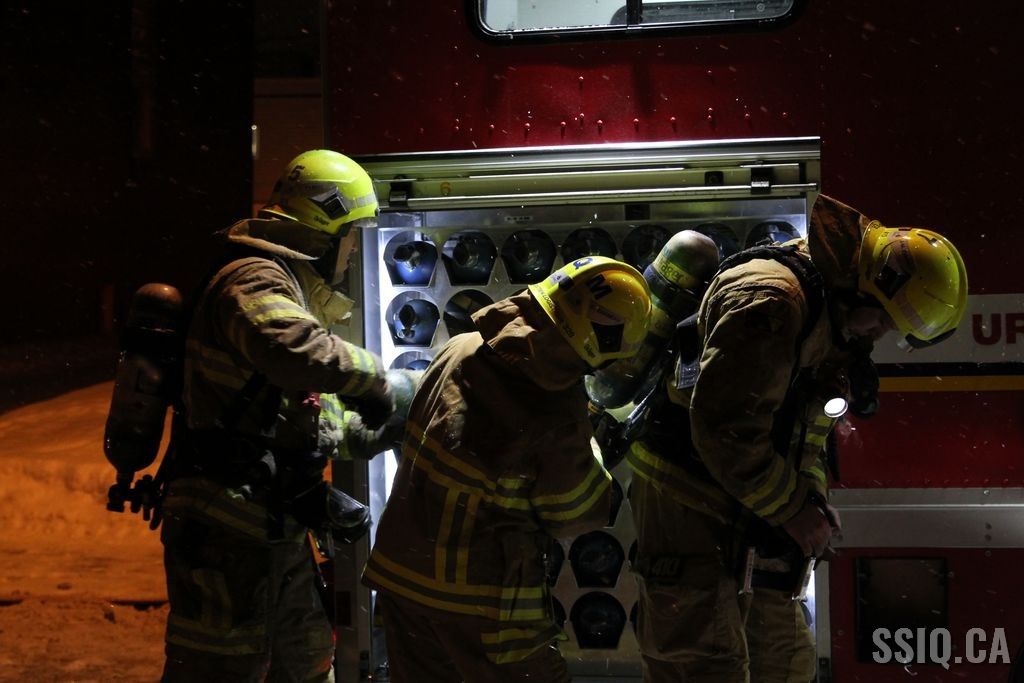 Arrivé sur les lieux, l'officier du 208 confirme que le feu fait rage et qu'il y a du sauvetage à faire. Devant la situation, l'intervention nécessaire et la deuxième alarme sont rapidement données.