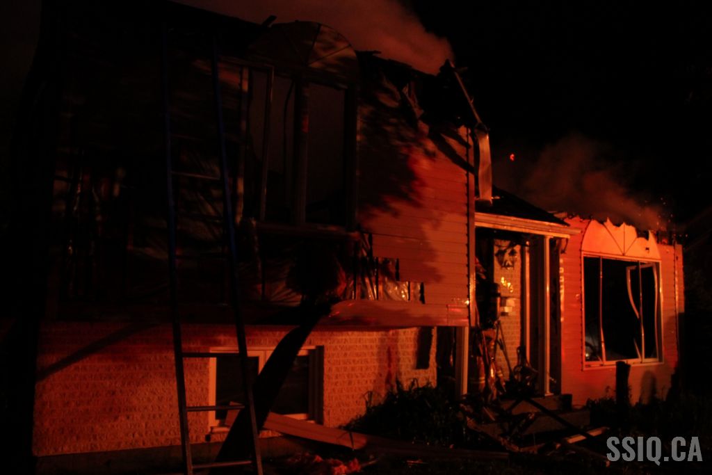 Plusieurs appels sont logés au 911 pour mentionner que de grosses flammes sont visibles au niveau de la toiture de la résidence.