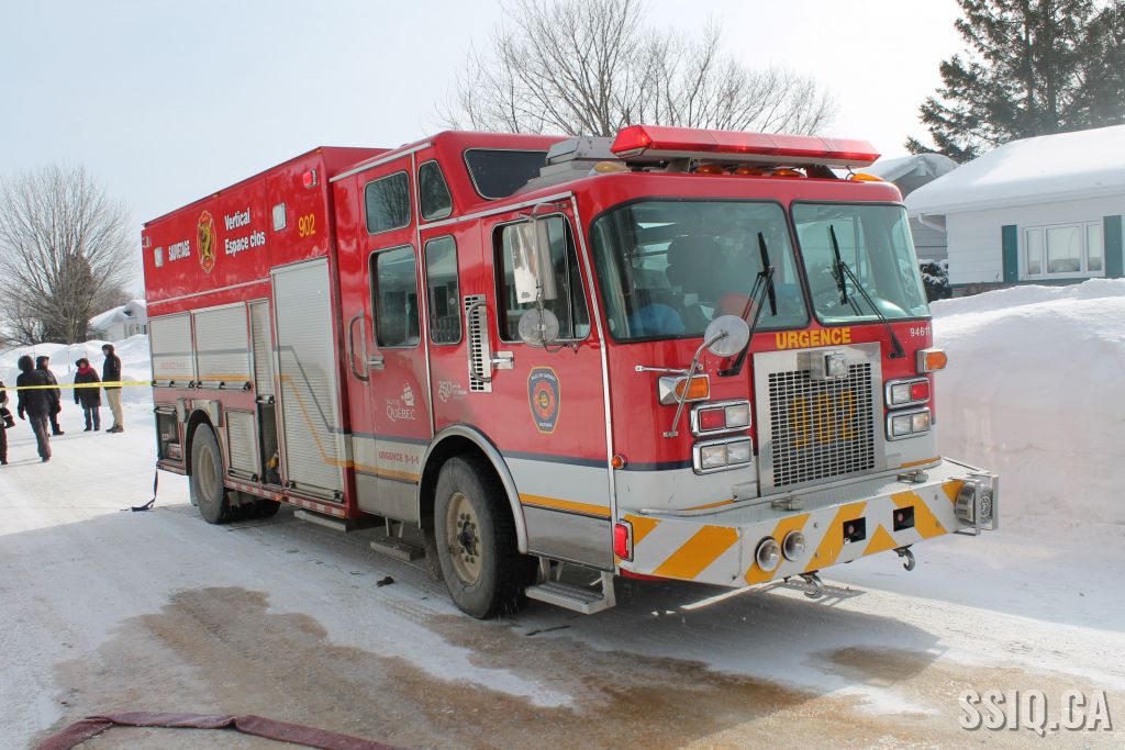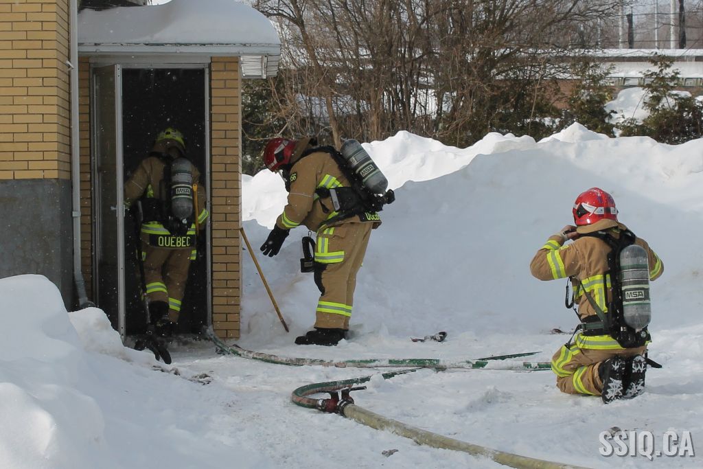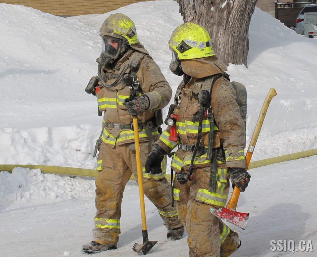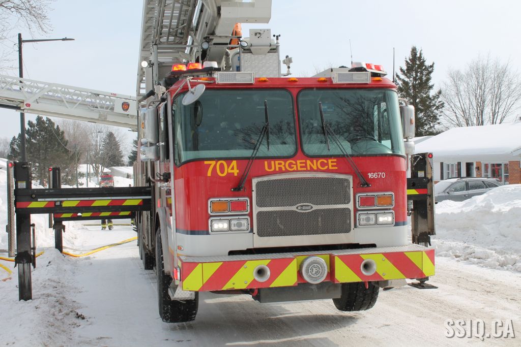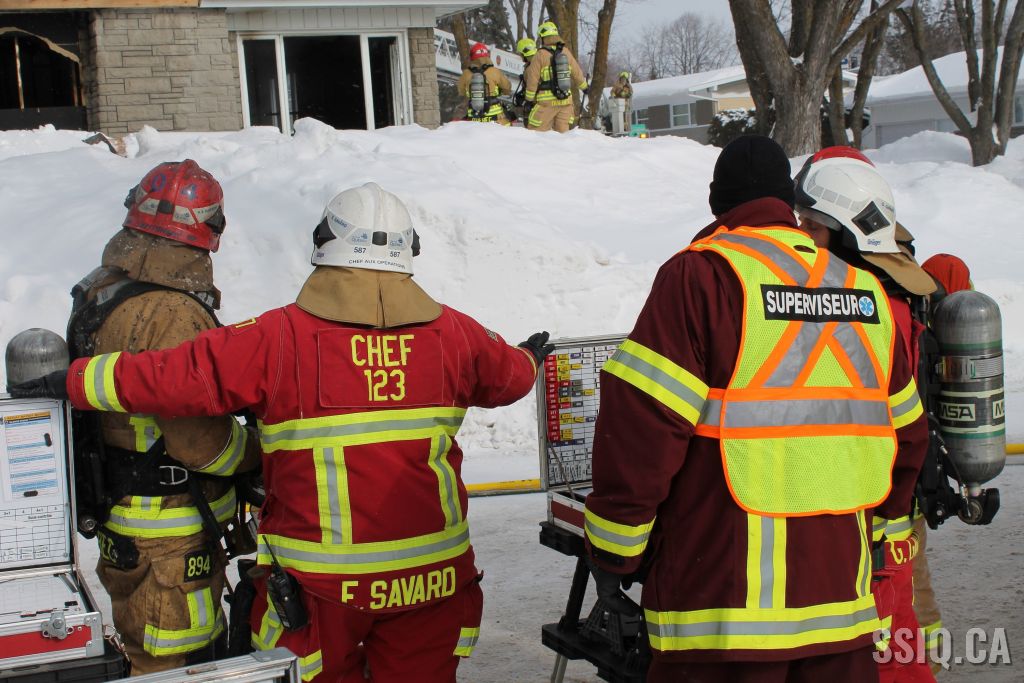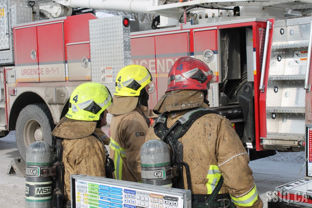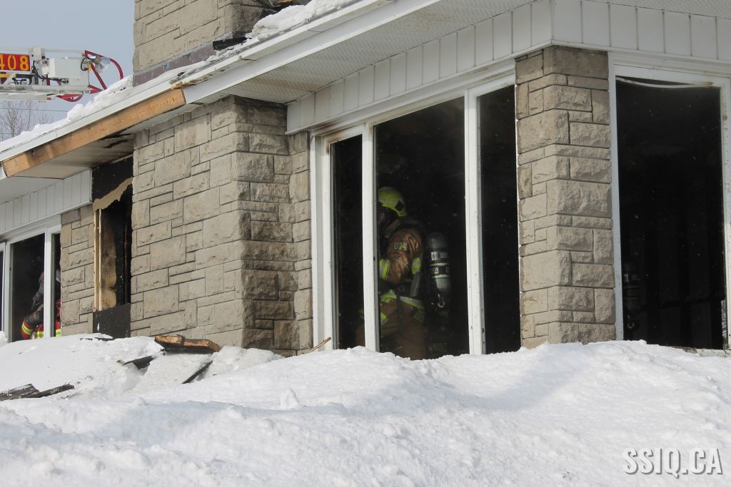 Un appel est logé à la centrale 911 et mentionne qu'il y a précense de fumée et de flammes qui sortent à l'extérieur du foyer de la résidence .