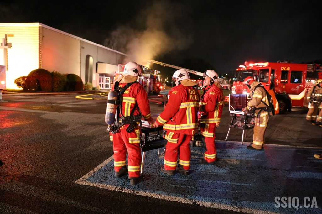 La grandeur du bâtiment et la propagation de l'incendie donnent du fil à retordre aux pompiers, des équipes sont placées aux endroits stratégiques pour limiter la propagation, une 2e alarme est ordonnée pour des équipes supplémentaires.