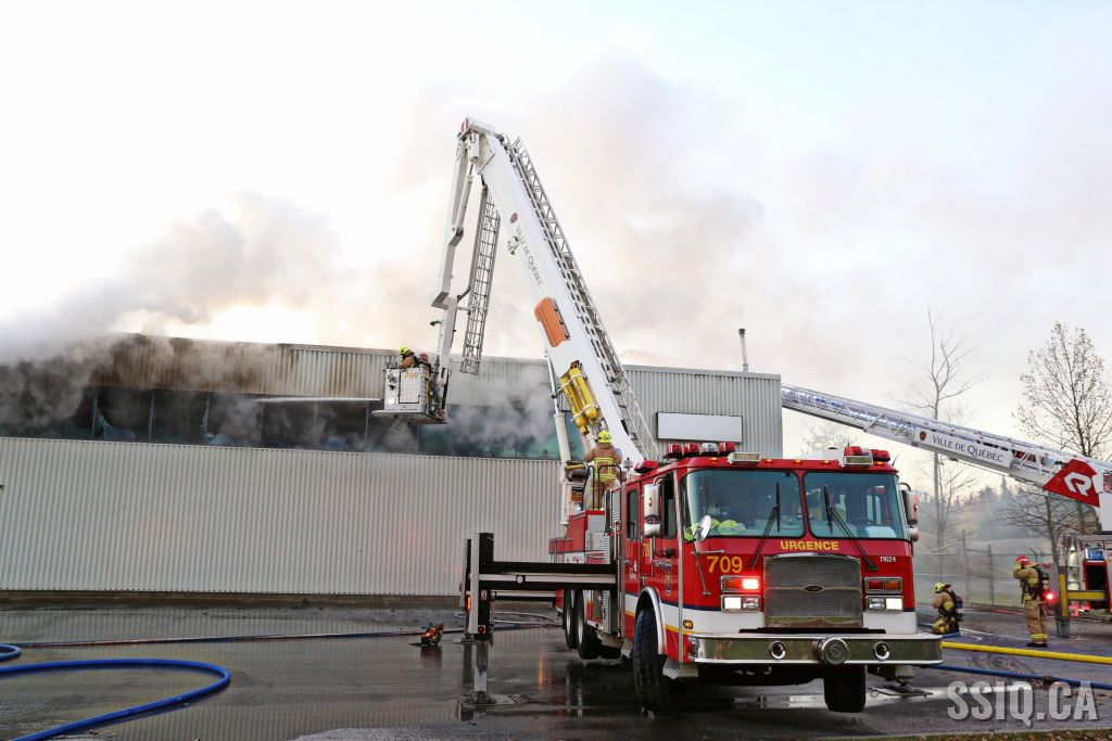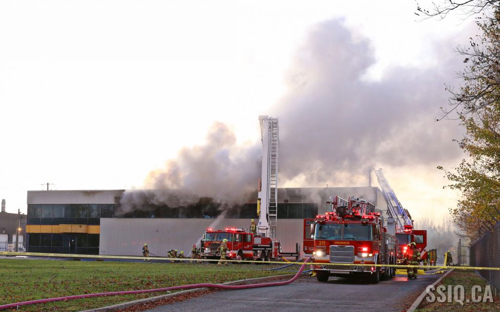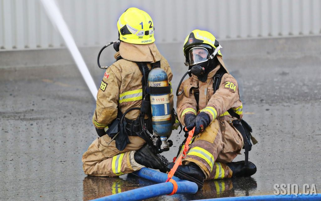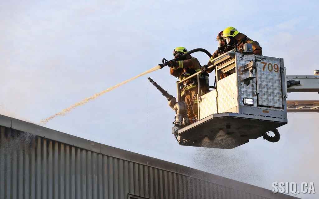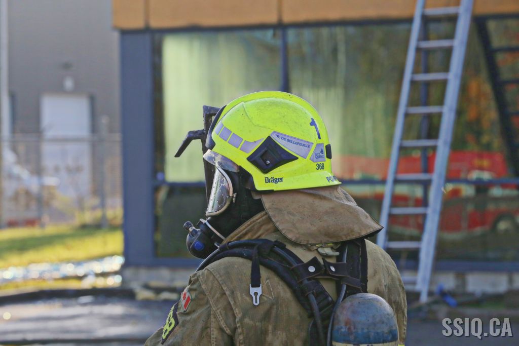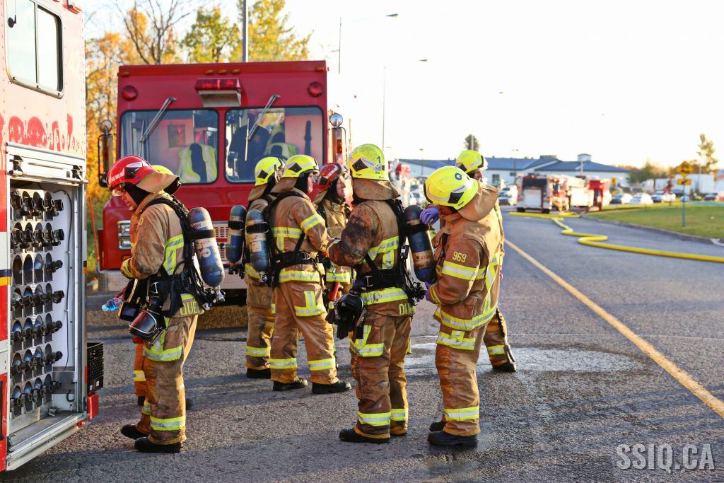 Le feu est effectivement pris à la grandeur du deuxième étage et sort par le toit. Les vitres ont éclaté à l'étage supérieur. L'intervention se déroule en mode défensif, l'évacuation est complétée.