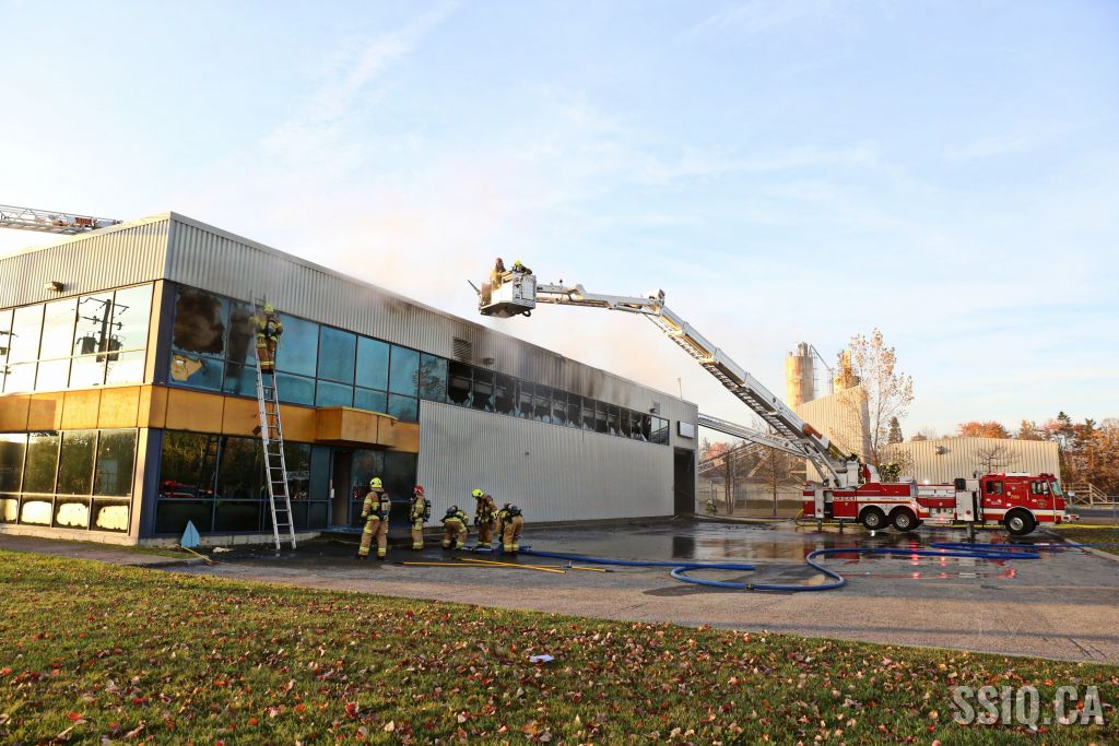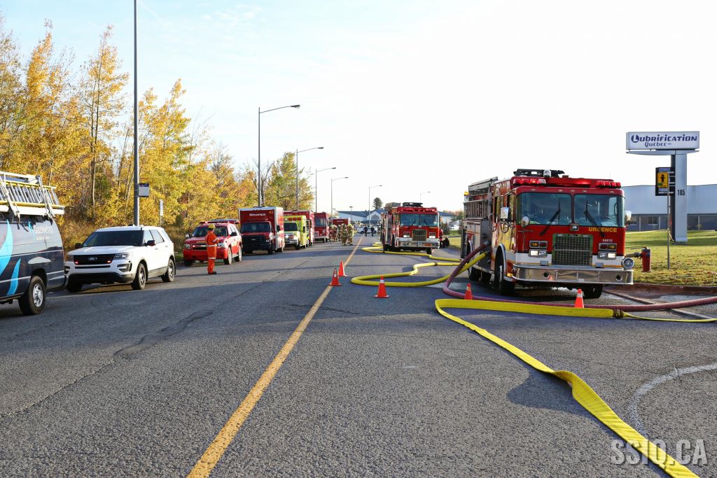 Rentré par une compagnie d'alarme initialement, les employés de ce bâtiment commercial de grande superficie confirment à la centrale que le feu est pris dans un réservoir. L'évacuation est en cours.