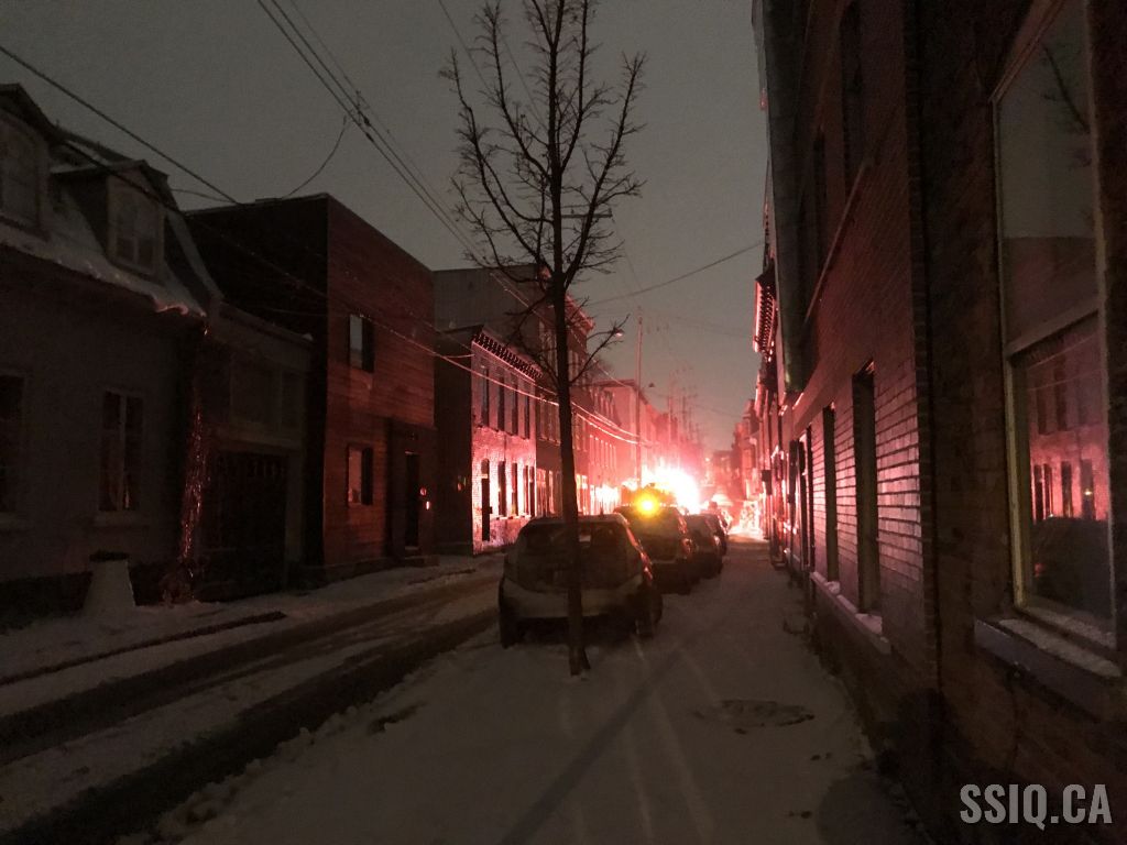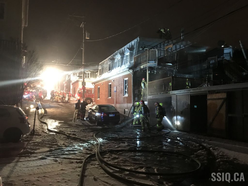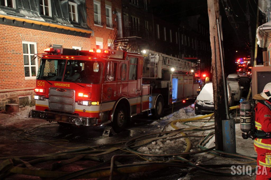 Les premiers détails sont qu'il y a une épaisse fumée noire ainsi que des flammes qui se dégage du batiment. L'intervention nécessaire est donné par le premier véhicule sur les lieux. L'endroit est difficilement accessible et la température froide cause de sérieux problèmes aux intervenants. Les alarmes se succèdent rapidement. La croix rouge ainsi qu'un autobus du RTC a été demandé.