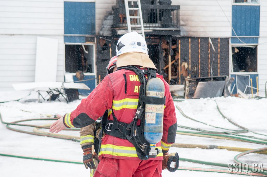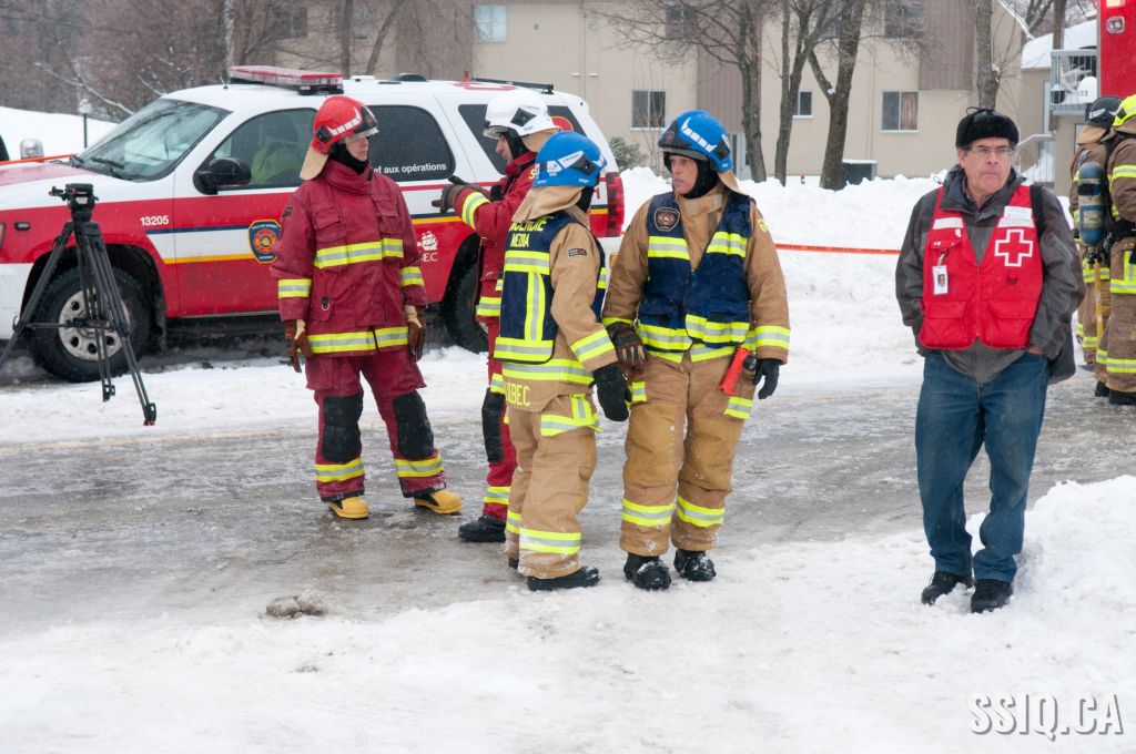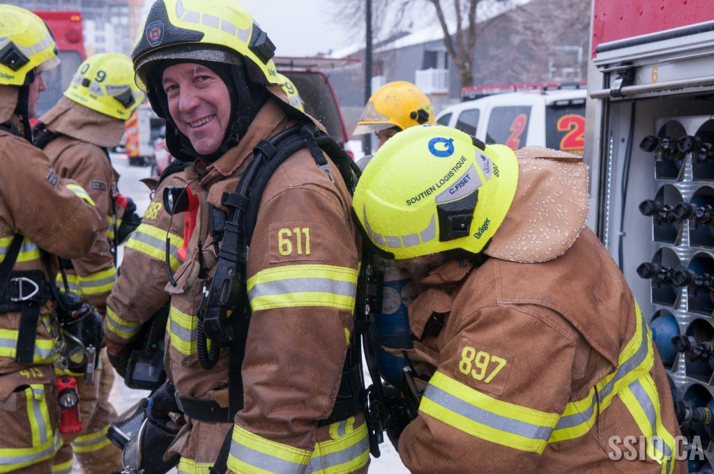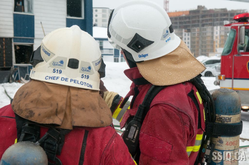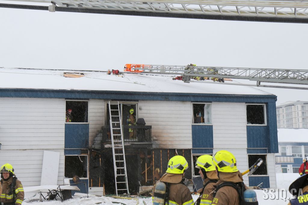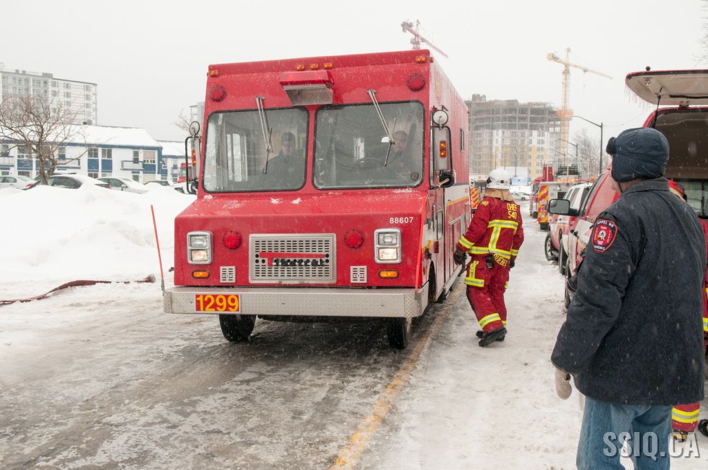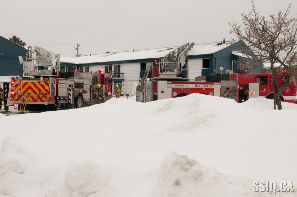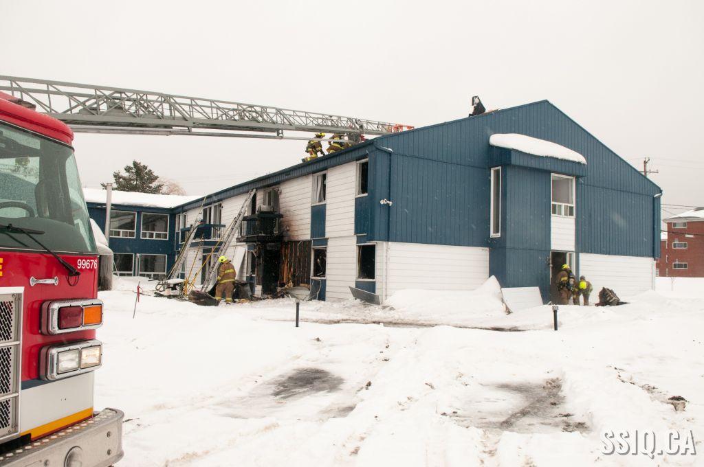 Plusieurs appels entrent au 9-1-1 pour signaler des flammes et de la fumée dans un bloc appartement du 4927, rue des Landes.