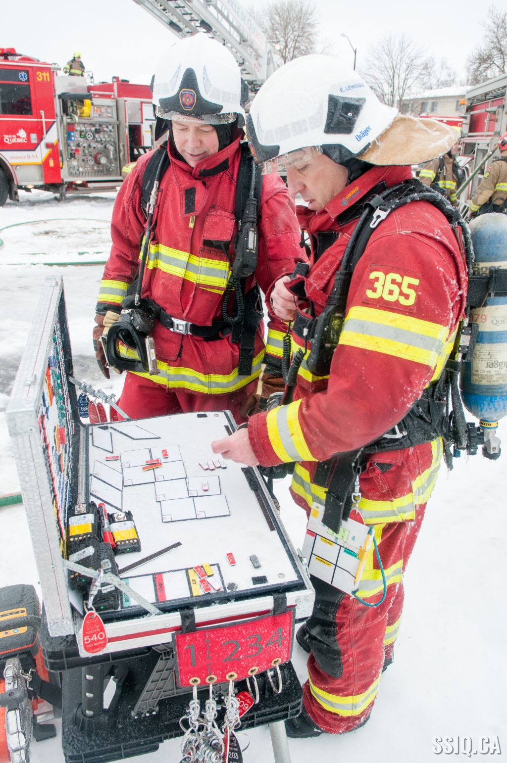 Sur place le 210 confirme un feu éclaté et établit un jet pour rabattre les flammes, alors que le 311 procède à une attaque à l'intérieur avec un autre jet.