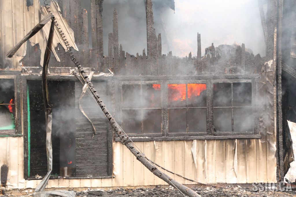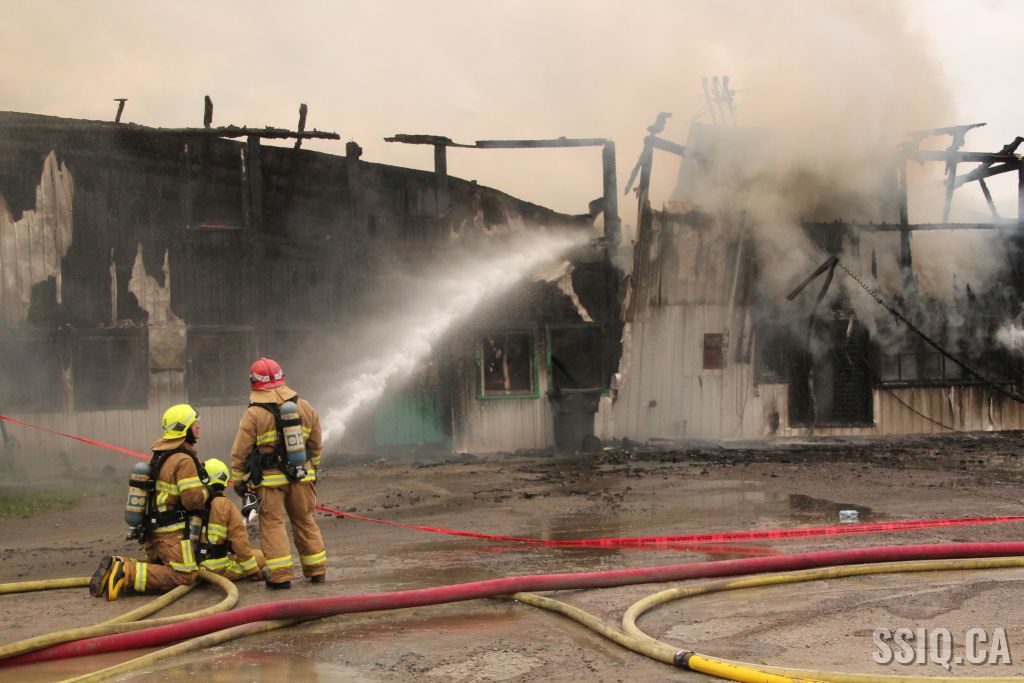 Le feu est éclaté à la grandeur du bâtiment (100 pieds par 100 pieds). La colonne de fumée est visible de très loin et des renforts policiers sont demandés pour aider à drainer la circulation automobile et protéger les pompiers au travail.