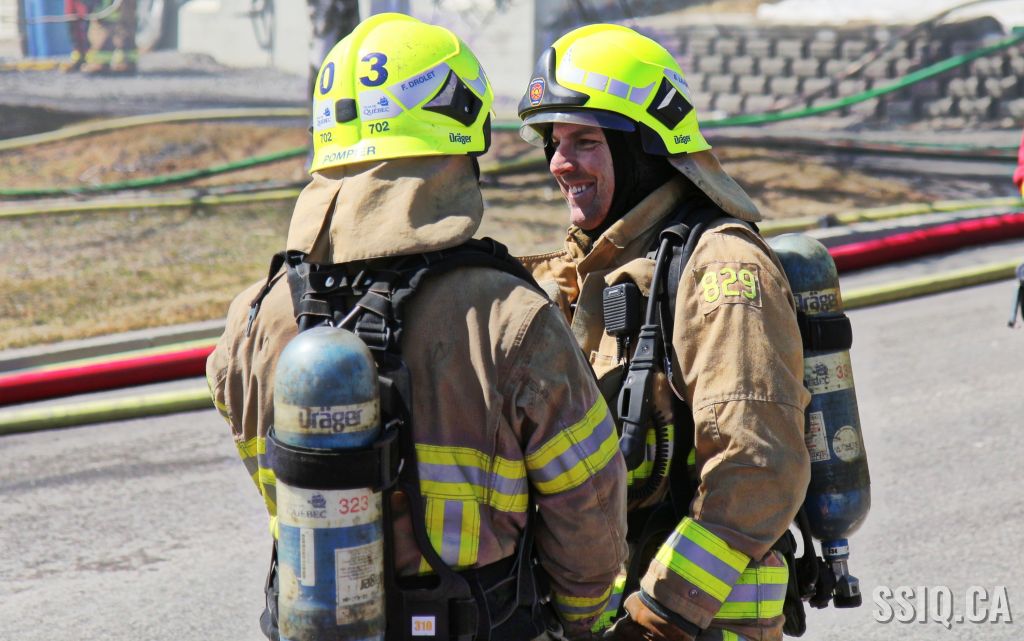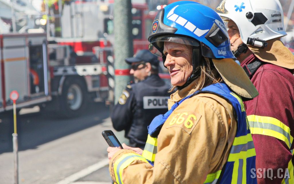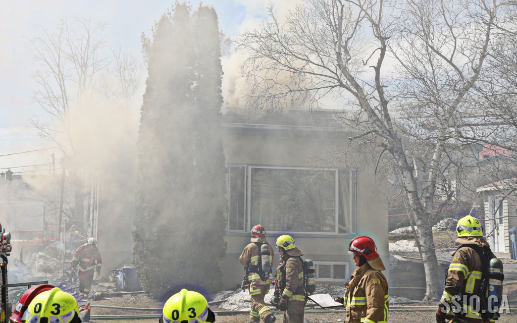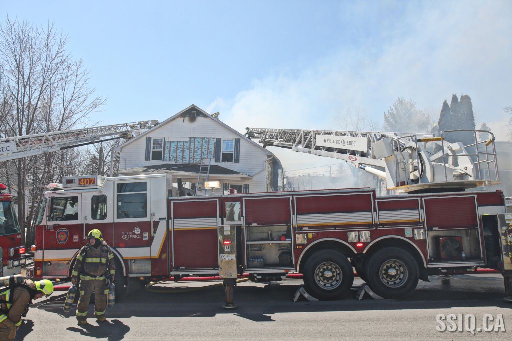 Arrivé sur les lieux, le 207 confirme un garage ainsi que deux résidences en feu, soit le 84 et 86, rue St-Raphaël, il ordonne également la 2e alarme. Les pompiers des casernes 7 et 17 font une attaque initiale.