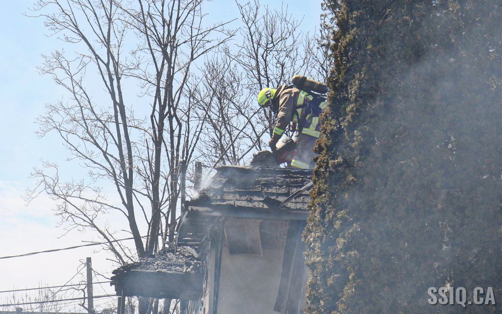 Plusieurs appels entrent au 9-1-1 pour signaler un garage en feu derrière le 86, rue St-Raphël. Rapidement, le 130 confirme une colonne de fumée noire apparente et ordonne l'intervention nécessaire de la caserne #1.