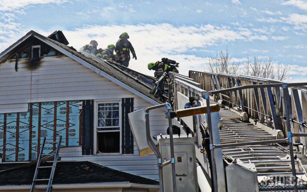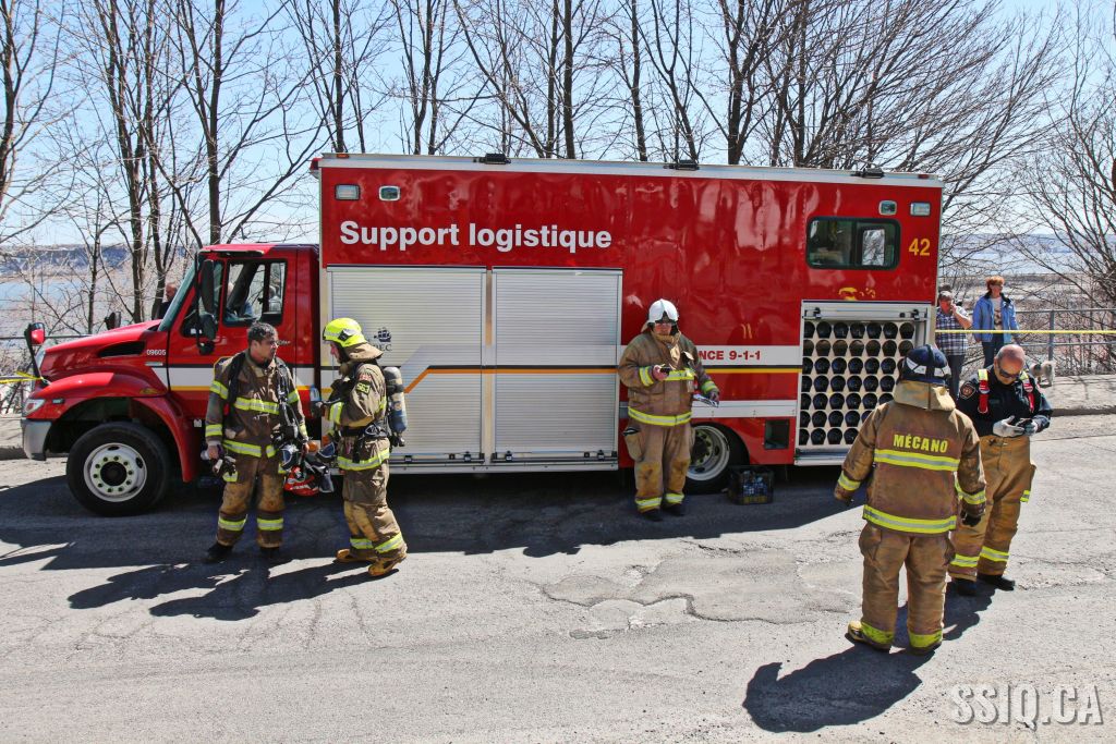 Le feu étant en progression dans les toitures des deux résidences, le 130 ordonne la 3e alarme quelques instants après son arrivée sur les lieux.
