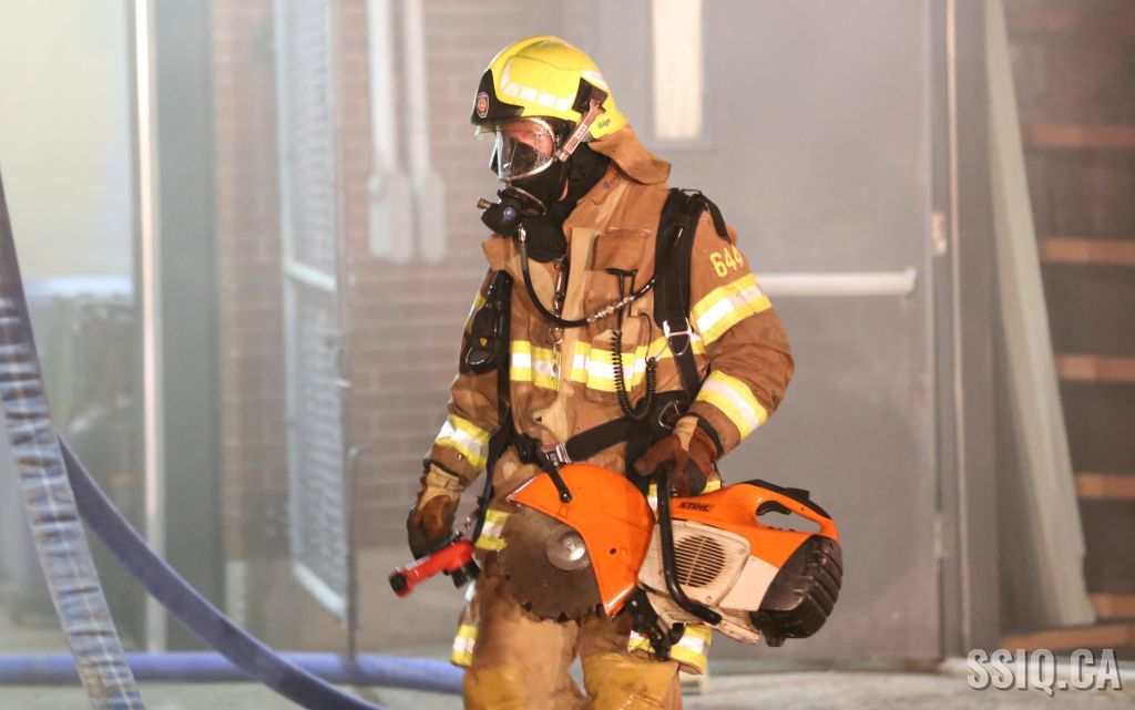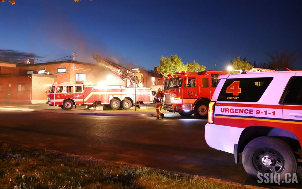Rapidement sur place, le véhicule 503 confirme une fumée dense apparente à l'intérieur du bâtiment et demande de compléter la 1ere alarme. Ils procèdent donc à une entrée forcée pour procéder à l'attaque. La fumée étant très dense et l'origine de l'incendie demeurant introuvable, l'intervention nécessaire ainsi que la 2e alarme sont ordonnées par le PC quelques instants plus tard.