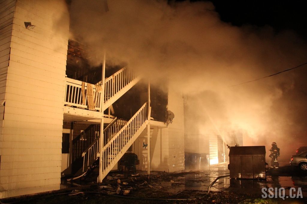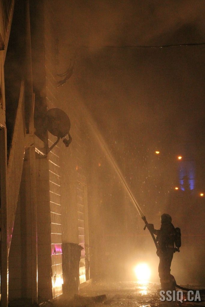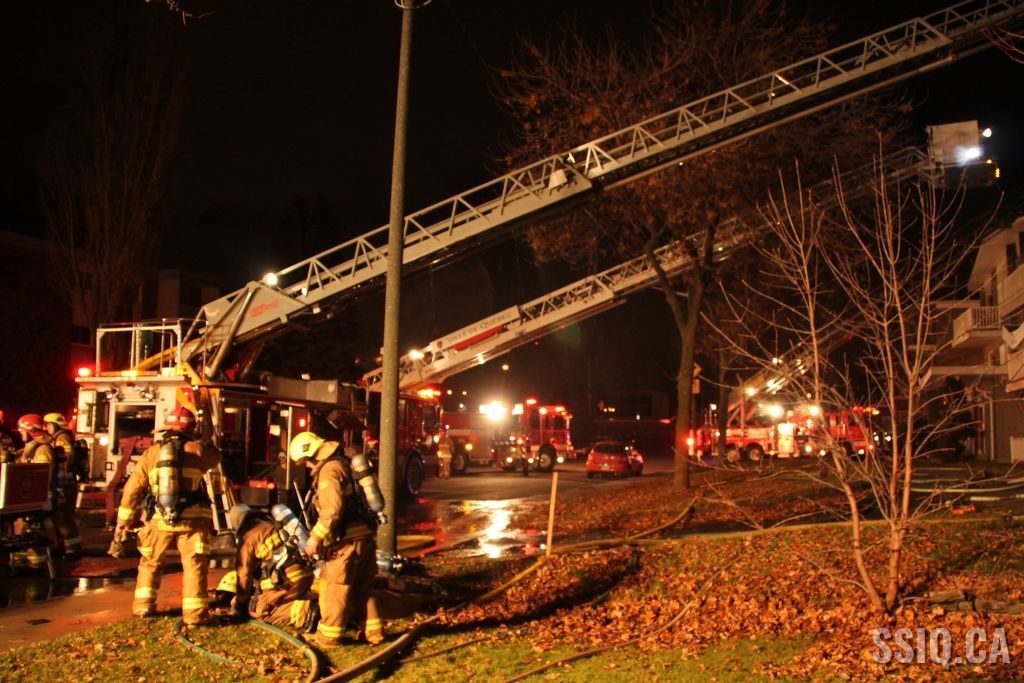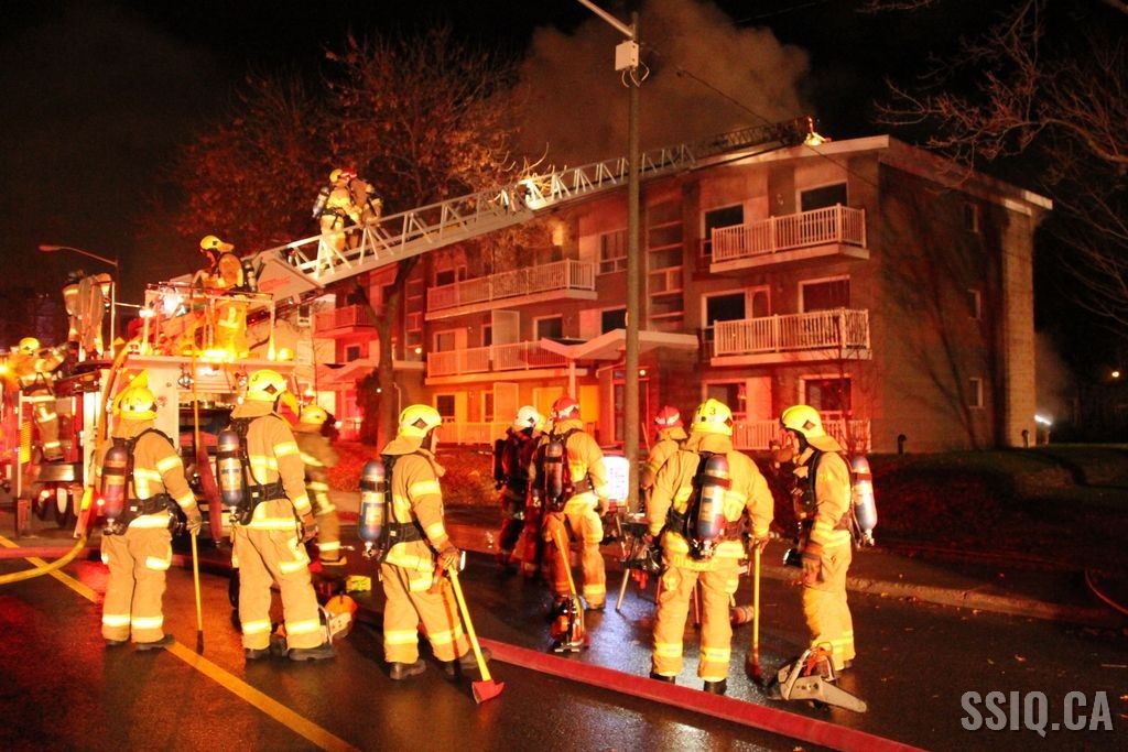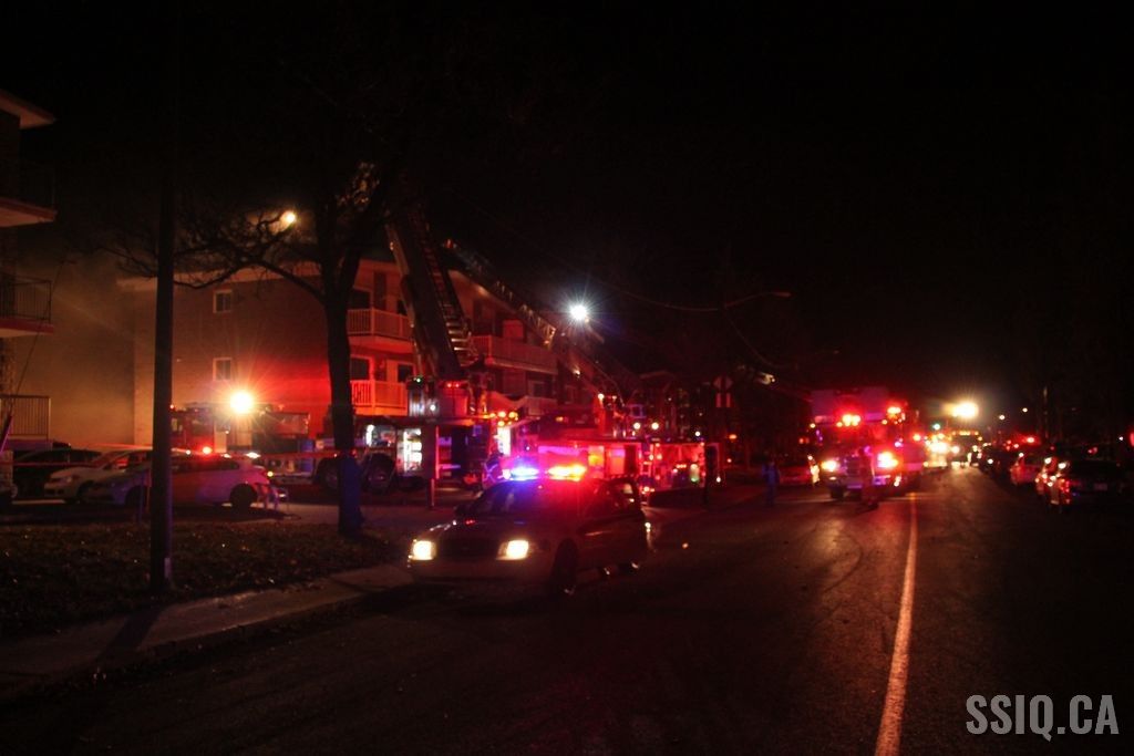 Au 911, les appels se multiplient, des passants sur l'autoroute, des gens des rues avoisinantes, d'autres appels viennent même de citoyens de l'autre côté de l'autoroute. Selon eux, les flammes et la fumée sont visibles à l'arrière du bâtiment ainsi qu'au niveau du toit.
