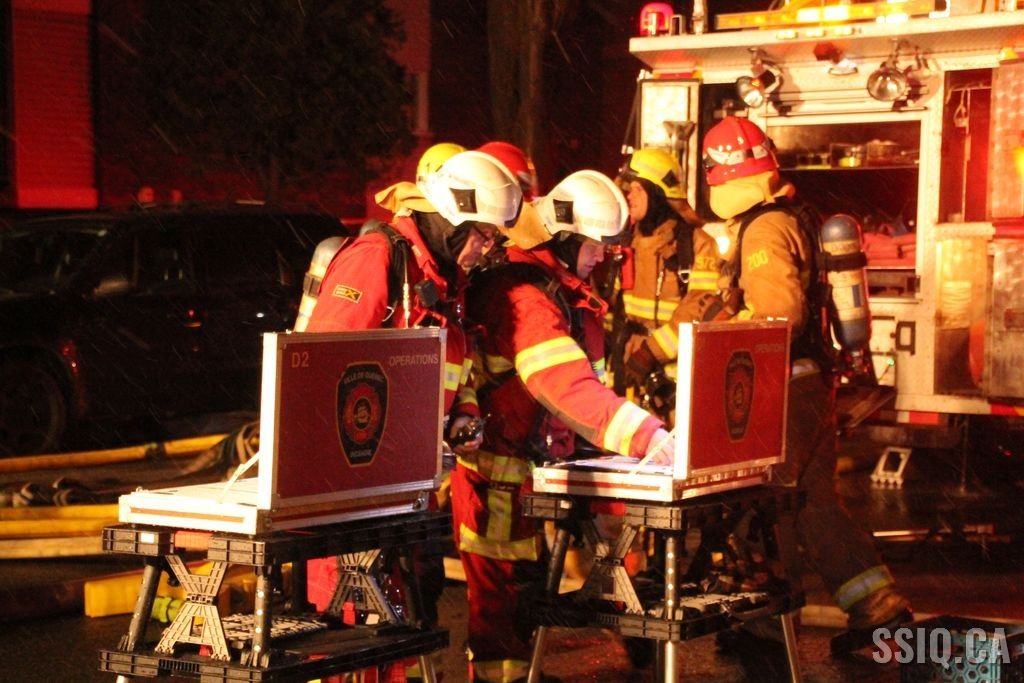 Sur les lieux, les équipes constatent que les flammes font rage au deuxième étage du 3025, boulevard Neilson, que la propagation au toit est imminente ainsi qu'au 3015 du boulevard Neilson. Devant cette situation, les alarmes se sont succédé.
