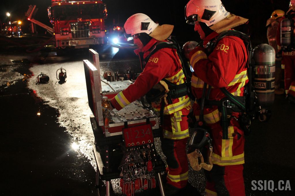 Les équipes des casernes 12 et 6 entrent dans le bâtiment quelques instants plus tard pour y découvrir un feu éclaté qui progresse rapidement, les alarmes se succèdent passant d'intervention nécessaire à 4e alarme en seulement 24 minutes.