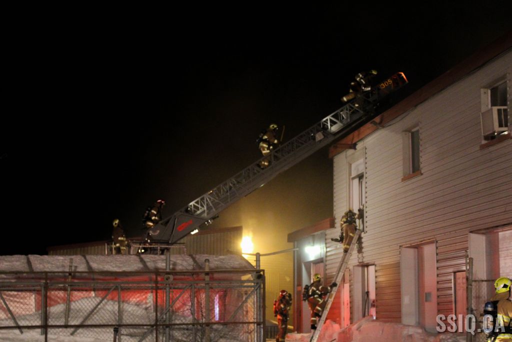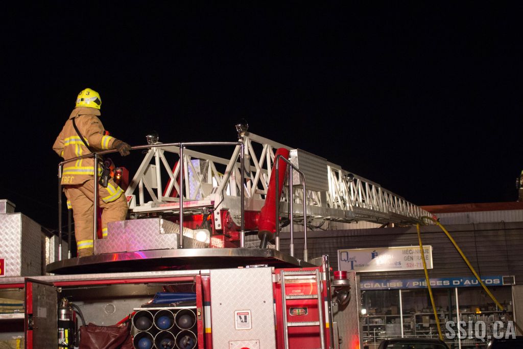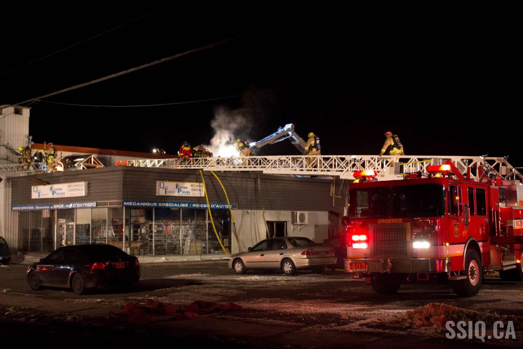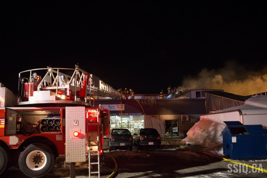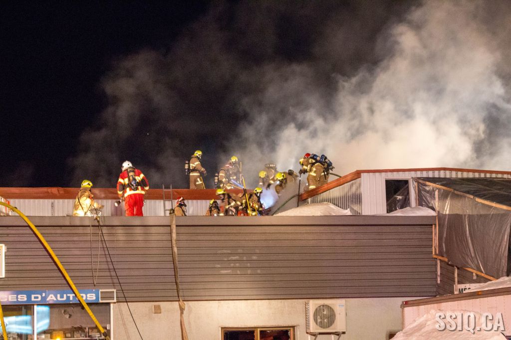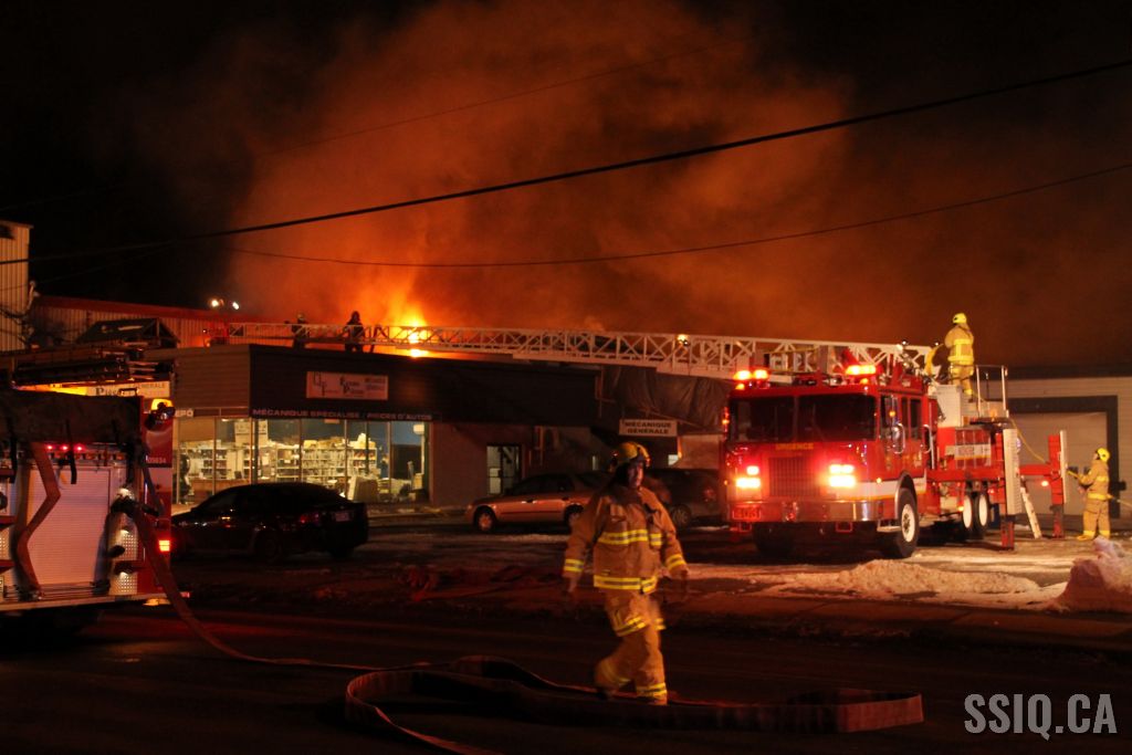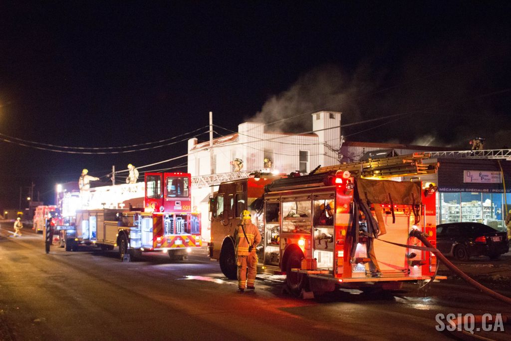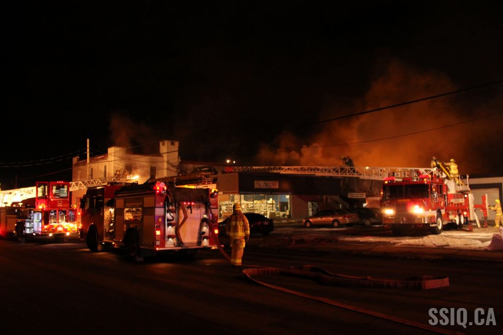 Un appel au 911 indique qu'il y aurait de la fumée qui s'échappe du bâtiment. Les premiers intervenants localisent l'élément destructeur au niveau d'un convoyeur à voitures se rendant au 2e étage. Le feu s'est rapidement propagé au toit depuis cet endroit. Compte tenu des risques associés aux vocations mixtes du bâtiment (logements, locaux commerciaux et entreposage de voitures), 4 alarmes ont été sonnées.