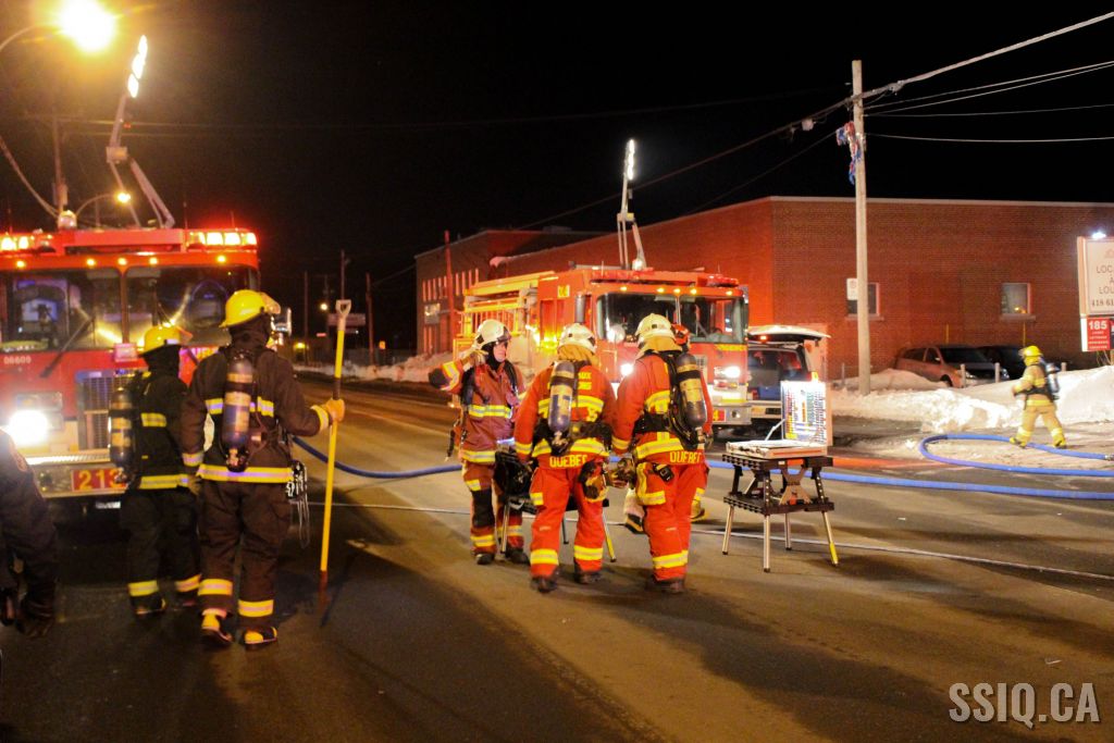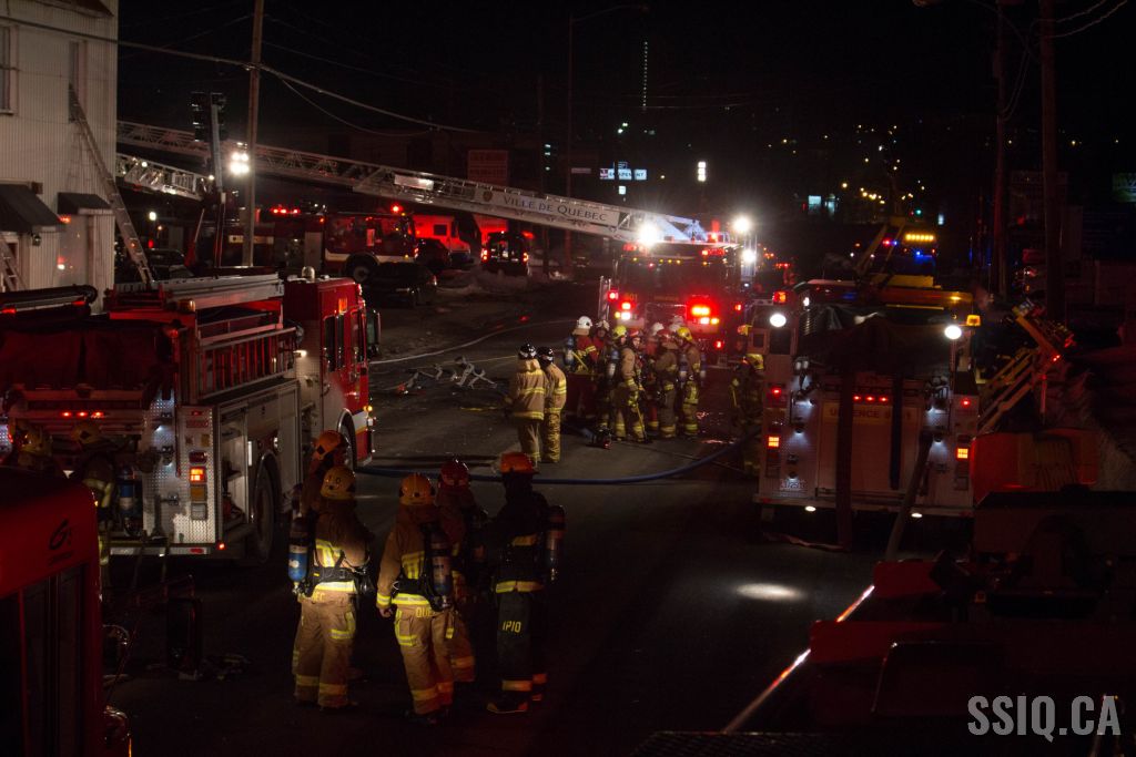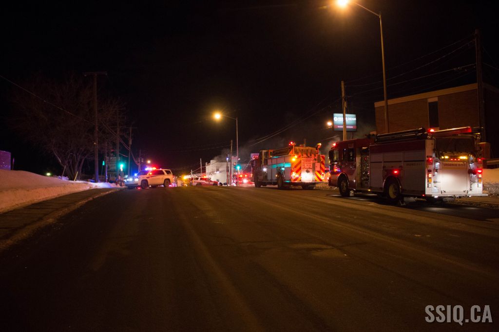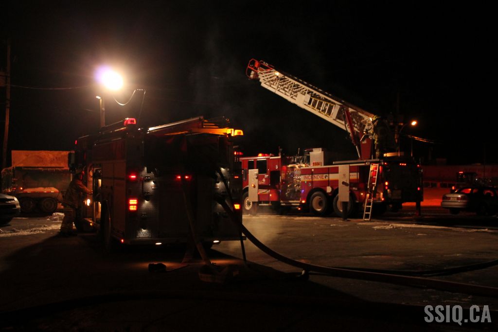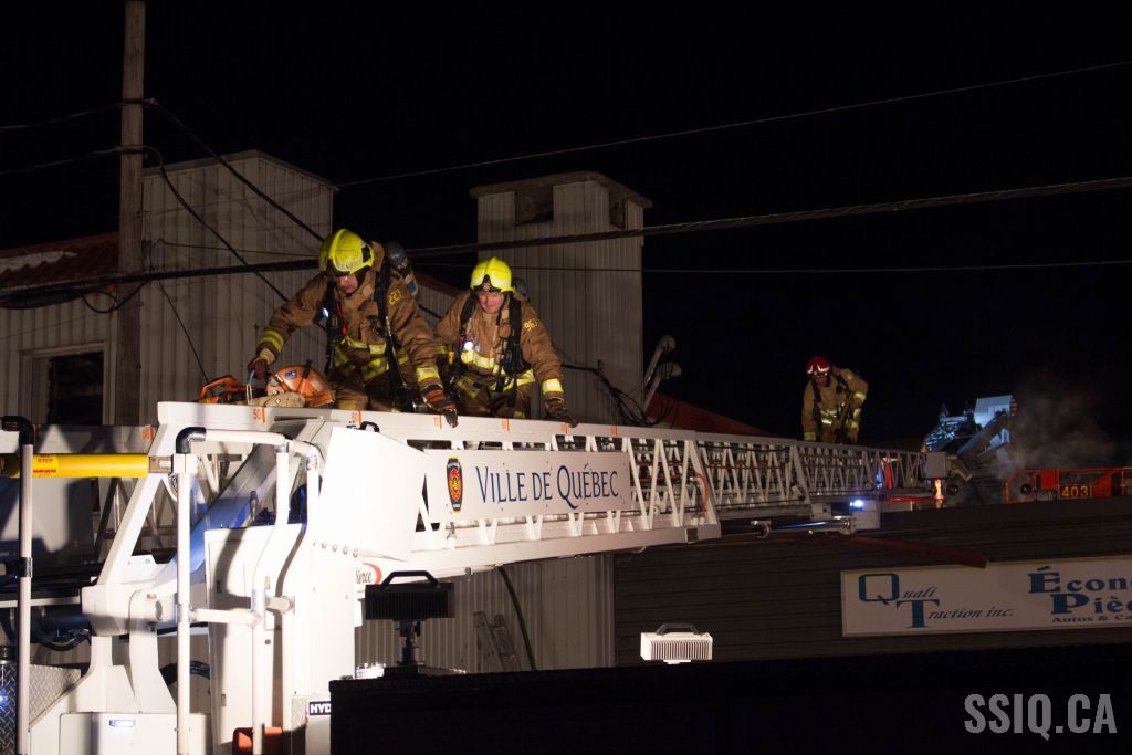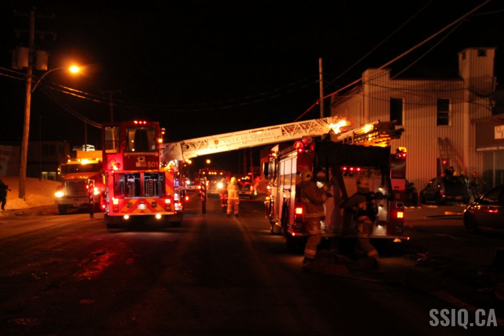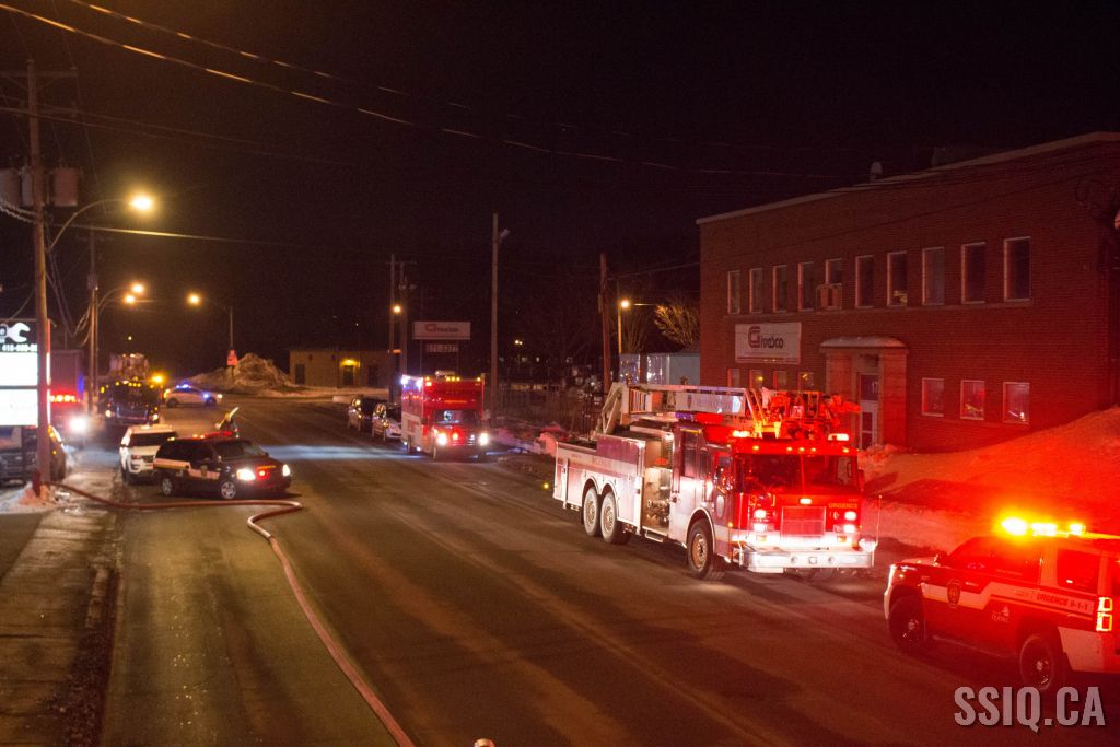 Un appel au 911 indique qu'il y aurait de la fumée qui s'échappe du bâtiment. Les premiers intervenants localisent l'élément destructeur au niveau d'un convoyeur à voitures se rendant au 2e étage. Le feu s'est rapidement propagé au toit depuis cet endroit. Compte tenu des risques associés aux vocations mixtes du bâtiment (logements, locaux commerciaux et entreposage de voitures), 4 alarmes ont été sonnées.