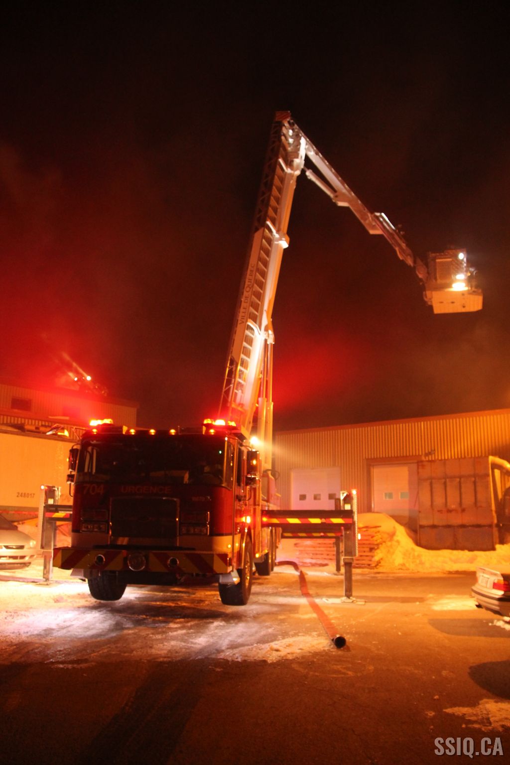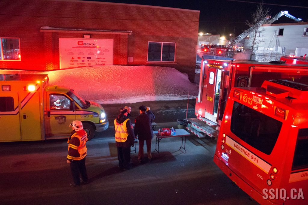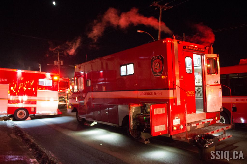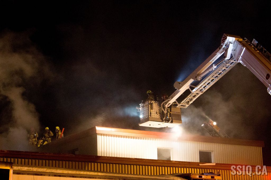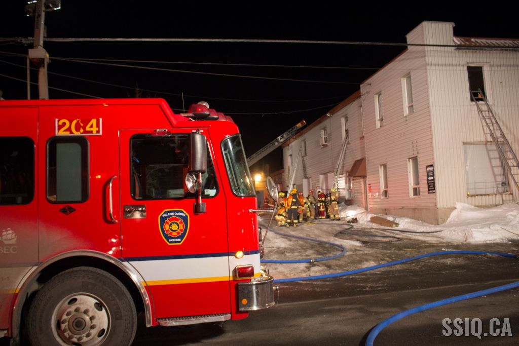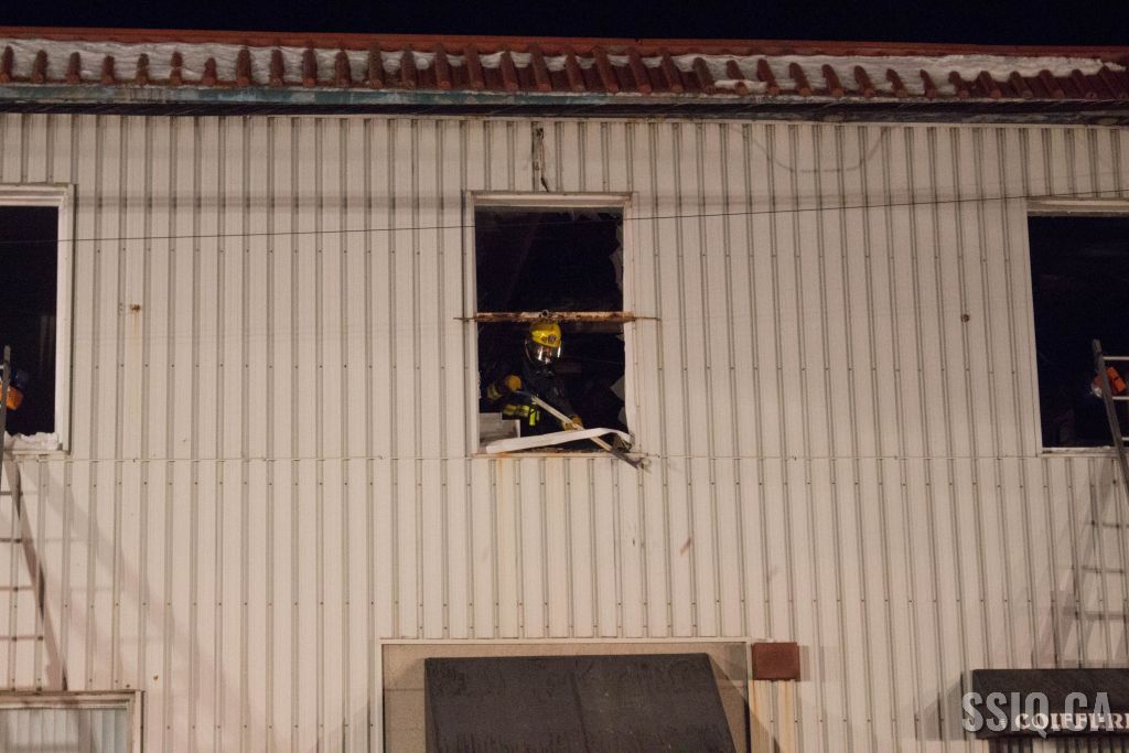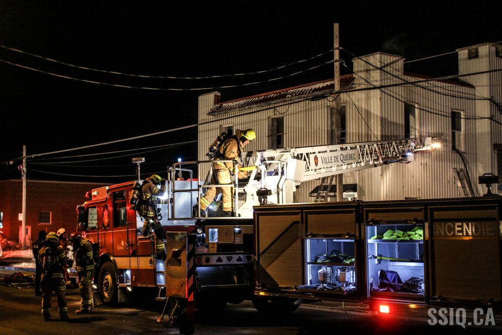 Un appel au 911 indique qu'il y aurait de la fumée qui s'échappe du bâtiment. Les premiers intervenants localisent l'élément destructeur au niveau d'un convoyeur à voitures se rendant au 2e étage. Le feu s'est rapidement propagé au toit depuis cet endroit. Compte tenu des risques associés aux vocations mixtes du bâtiment (logements, locaux commerciaux et entreposage de voitures), 4 alarmes ont été sonnées.