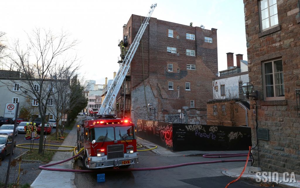 Cet après-midi, les pompiers du SPCIQ auront eu à intervenir sur un incendie nécessitant 4 alarme au 217 et 219 rue St-Paul.