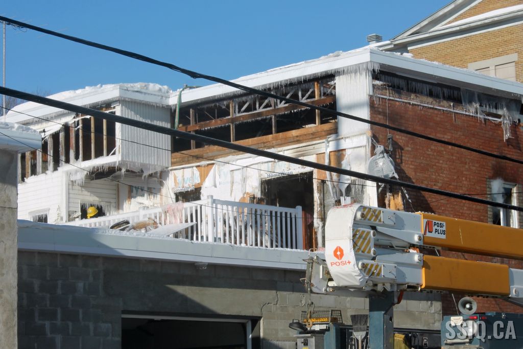 Plus tard dans la journée, une pelle mécanique a été demander sur les lieux pour finaliser l'extinction des derniers foyers d'incendie et procéder à la démolition de la résidence.