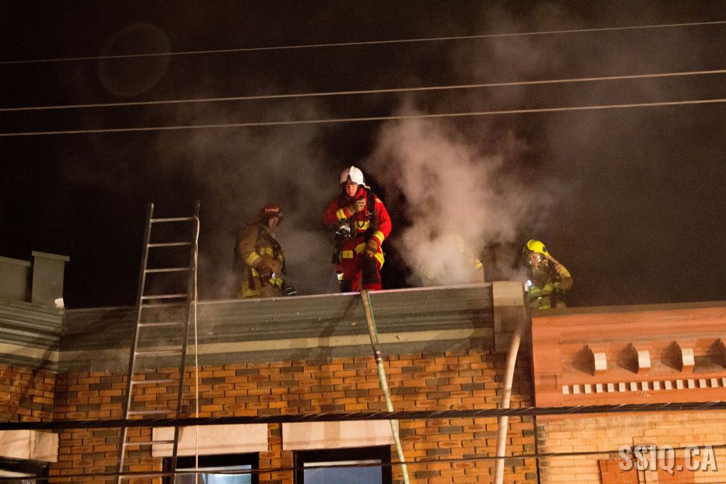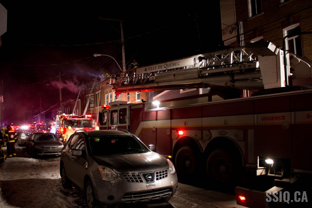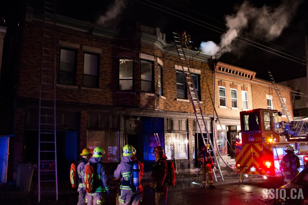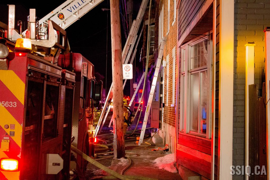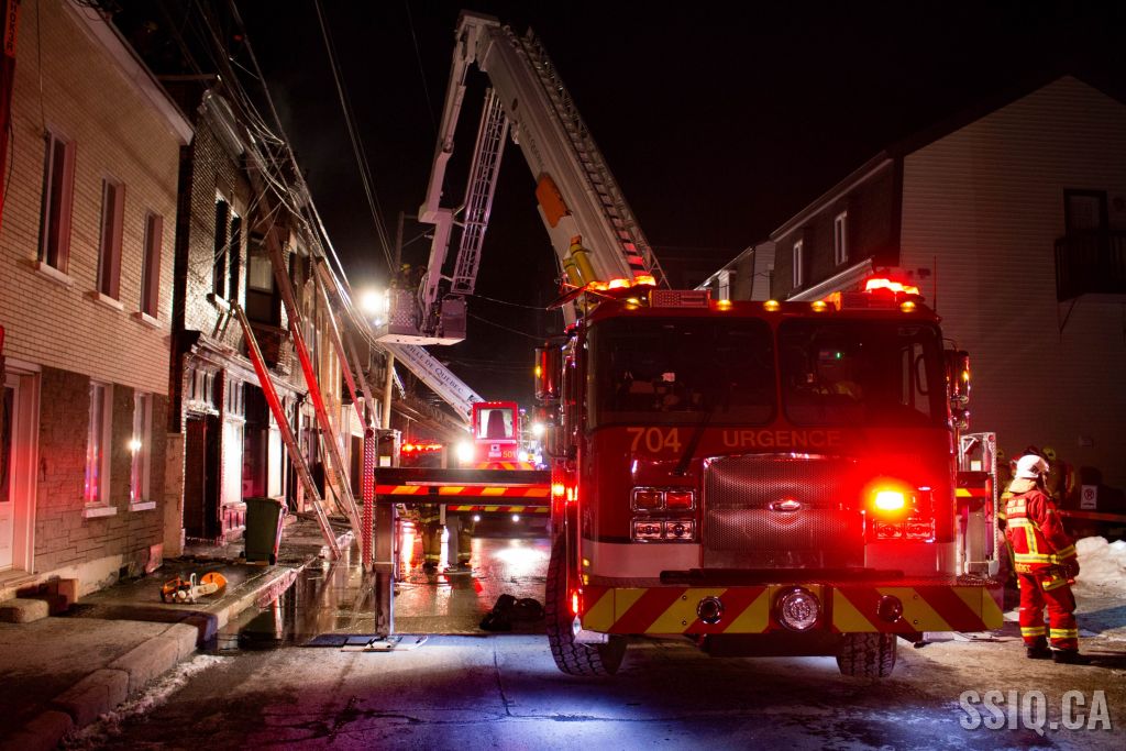 L'incendie est signalé par un résident de l'endroit. Celui-ci indique qu'il y aurait du feu dans l'entretoit, possiblement à la suite d'un problème avec la cheminée. Le 203 observe, à son arrivée, la présence de fumée au toit et signale l'intervention nécessaire. Puisque l'élément destructeur est en forte progression, une 2e alarme est sonnée. Un délestage à distance est aussi demandé pour faciliter l'intervention.