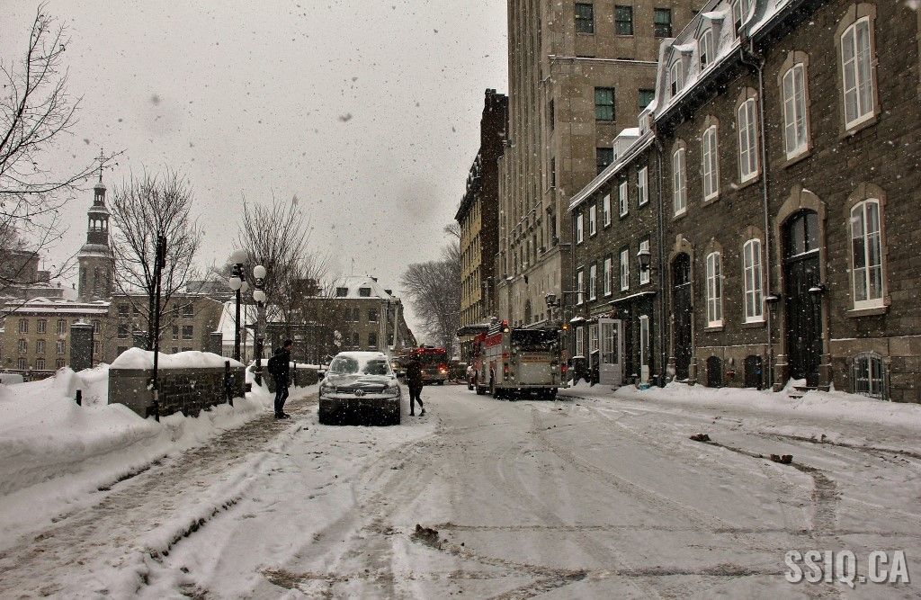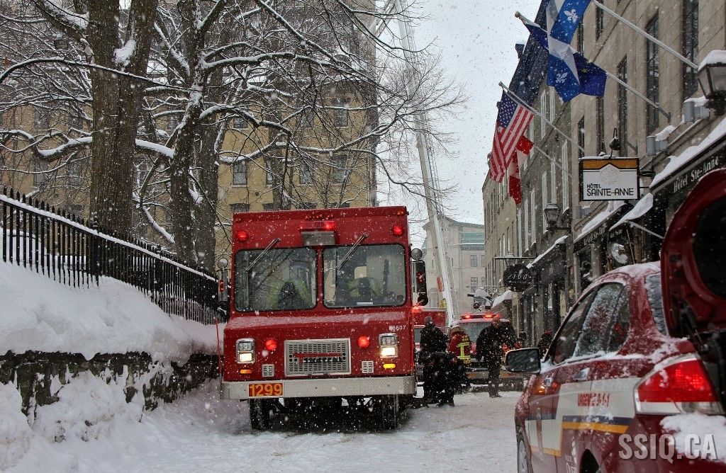 En début d'après-midi, une 1ère alarme est donnée à l’hôtel Clarendon située au 57 rue Sainte-Anne. Les premières informations mentionneraient qu'au 6e étages il y aurait une épaisse fumée noire. Par la suite, plusieurs appels sont logés au 911 pour mentionner qu'il y aurait présence de flammes dans une salle mécanique. Avec les informations supplémentaires, l'officier du 202 ordonne l'intervention nécessaire.