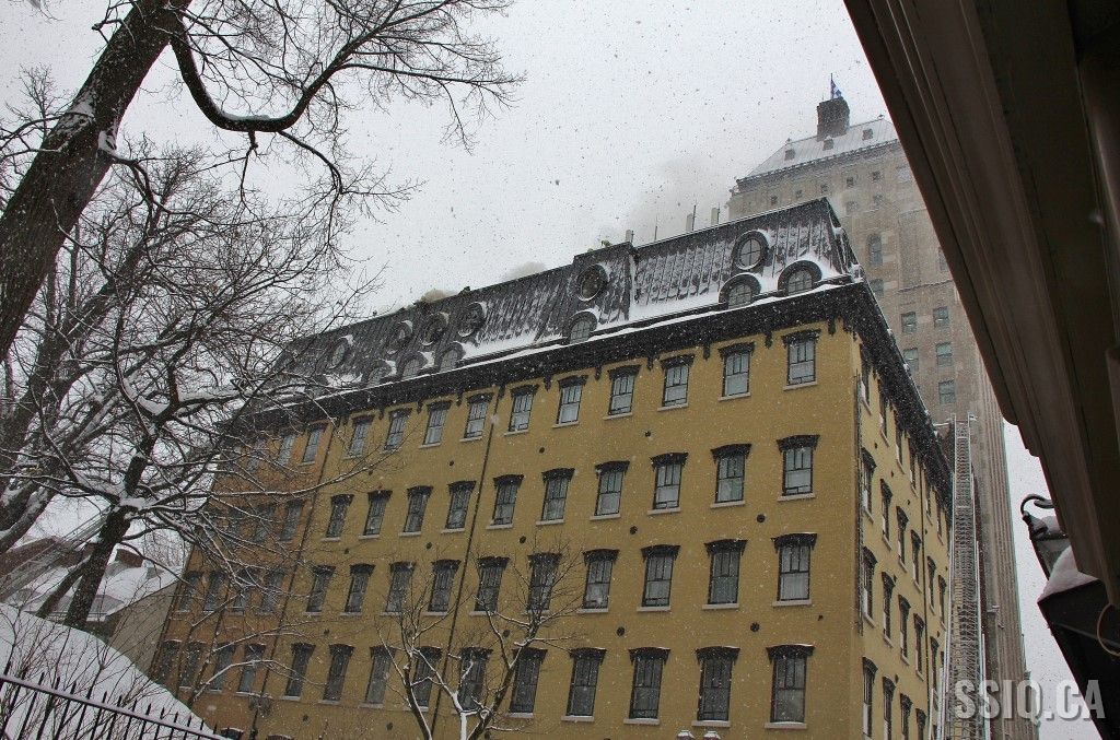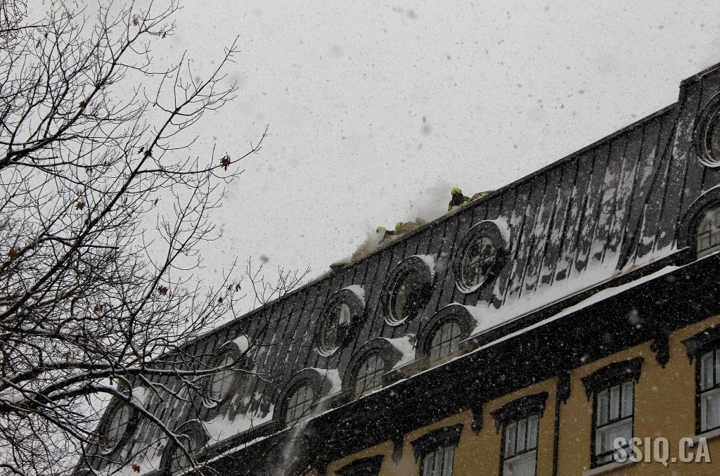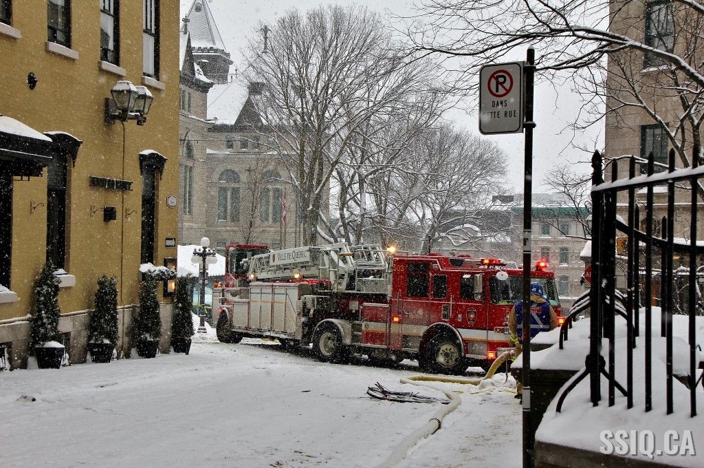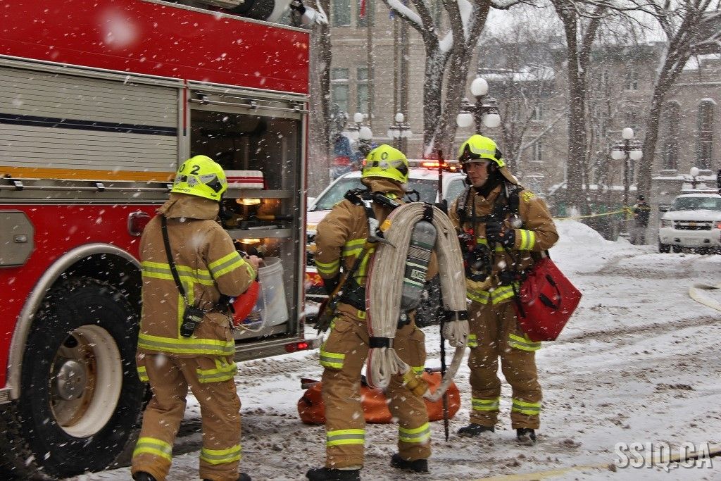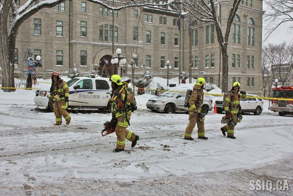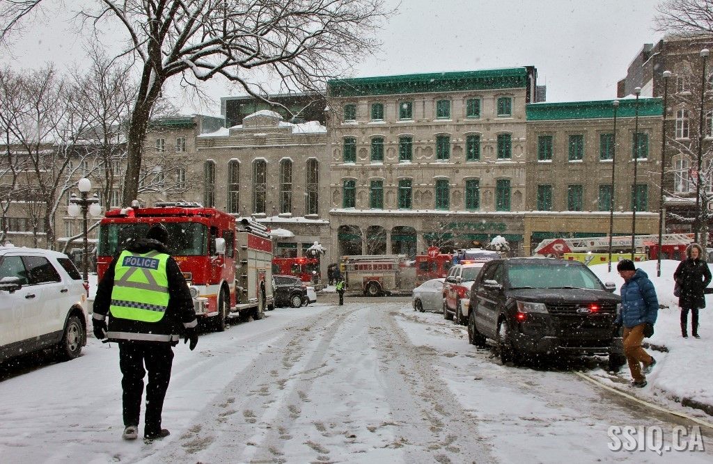 Rapidement sur place, l'équipe du 202 confirme qu'il y a de la fumée apparente au niveau du toit. Les équipes se déploient sur les étages pour constater que le feu fait bel et bien rage dans une salle mécanique située au 6e étage et qu'il se propage rapidement, une 2e alarme est alors demandée. Les flammes ont réussi à attaquer la toiture qui est difficilement travaillable étant donné l'âge du bâtiment. Plusieurs ouvertures ont été fait au niveau de la toiture pour contrôler l'incendie. Devant les risques élevés d'aggravation une 3e et 4e alarme sont sonnées.