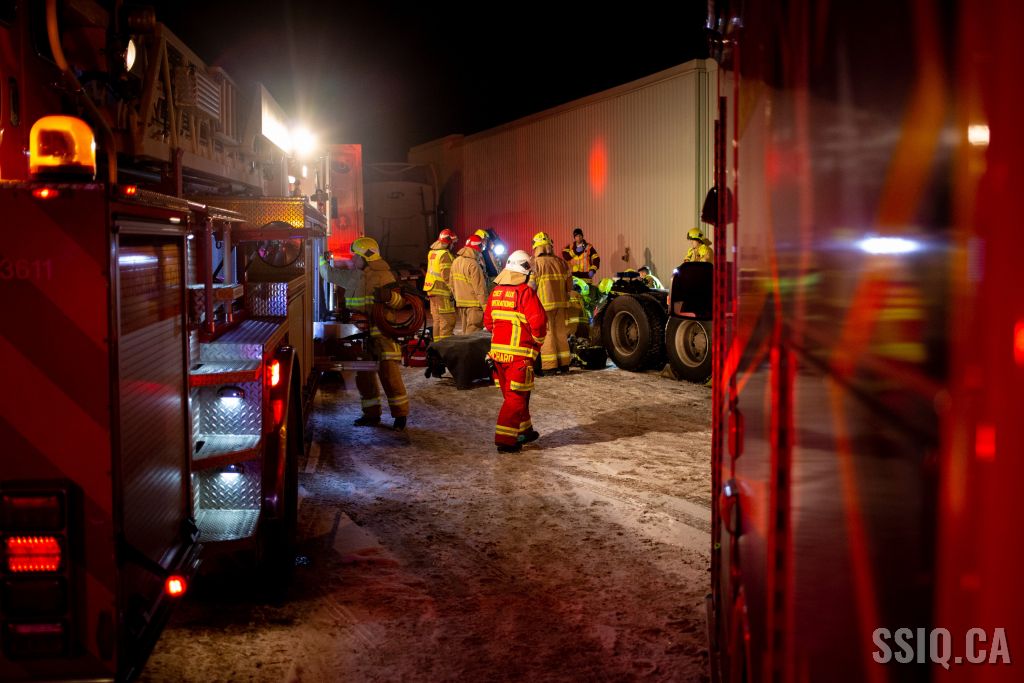 Ce soir, les pompiers des casernes 3 et 5 sont intervenus pour un accident au 380, avenue Godin, dans l'arrondissement Les Rivières.