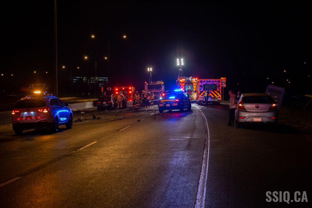 Cette nuit, une collision frontale impliquant un véhicule et un autobus du Réseau de transport de la Capitale s'est produite sur l'autoroute 440 en direction ouest, à la hauteur du boulevard François-De Laval.