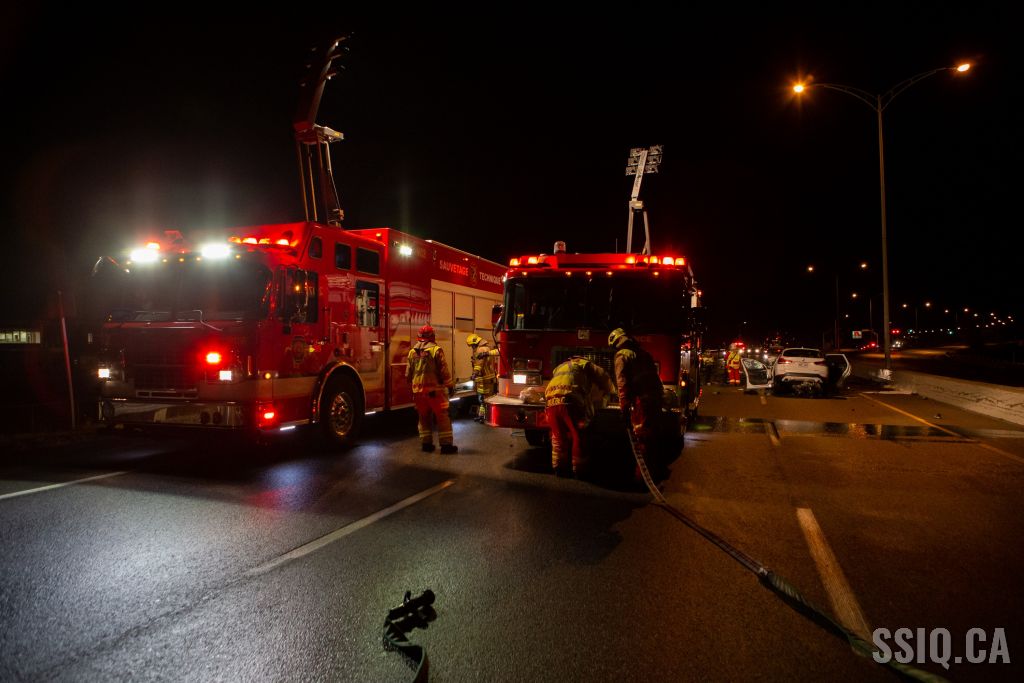 En arrivant sur les lieux, l'équipe du 902 s'affaire à débuter les manoeuvres avec les outils de désincarcération, tandis que l'équipe du 207 met en place un jet de protection. Le travail permet de sortir rapidement le conducteur du véhicule pour être pris en charge par les paramédics. Deux ambulances de la CTAQ ont été demandées sur les lieux. C'est tôt ce matin qu'on apprendra le décès du conducteur.