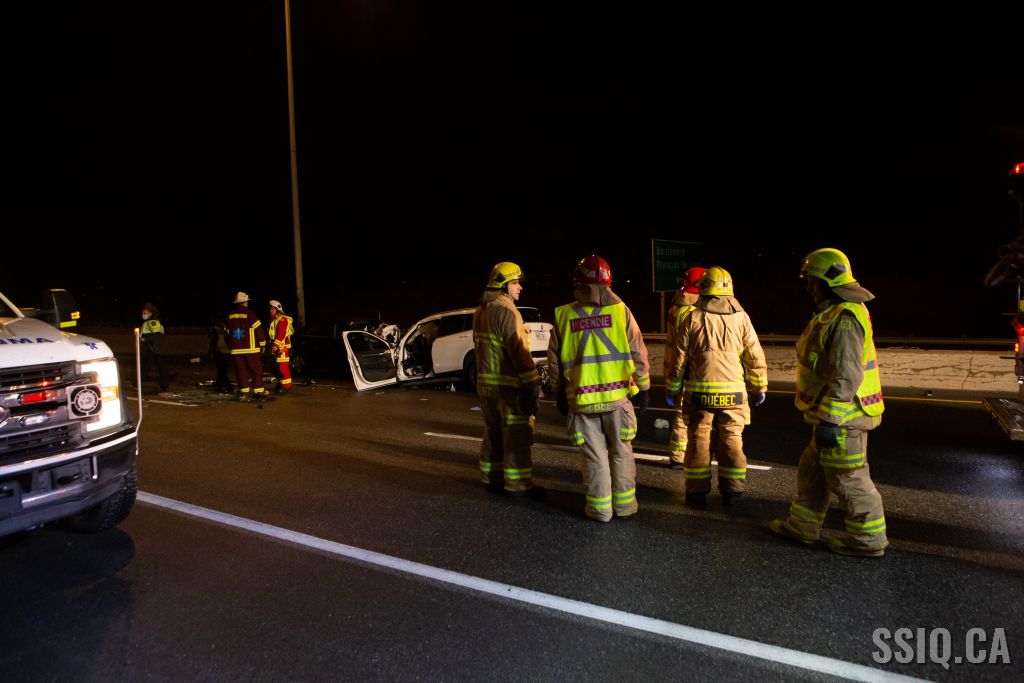 L'autoroute en direction ouest a été complètement fermée à la circulation pendant l'intervention et par la suite pour le temps de l'enquête par le service policier.