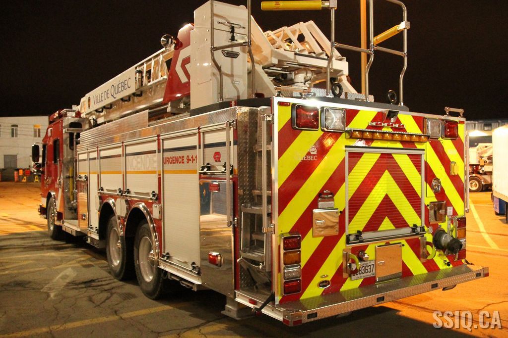 C'est lundi le 7 décembre que le premier de 3 véhicules de marque Rosenbauer est arrivé au garage municipal de la Ville de Québec.