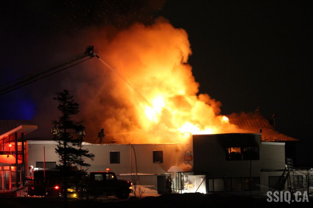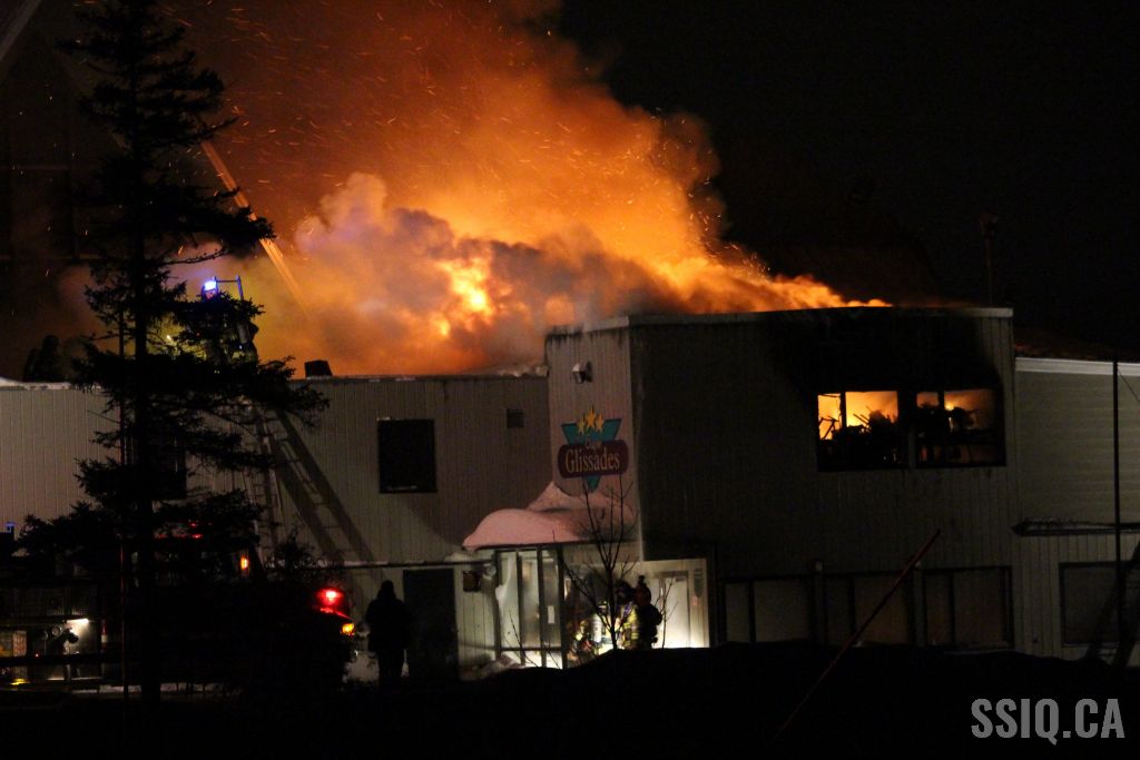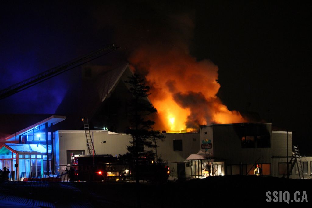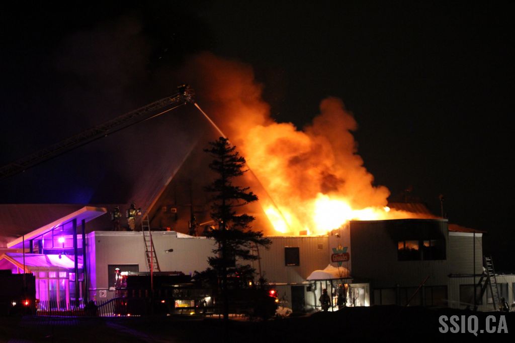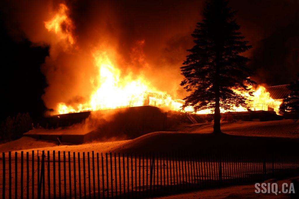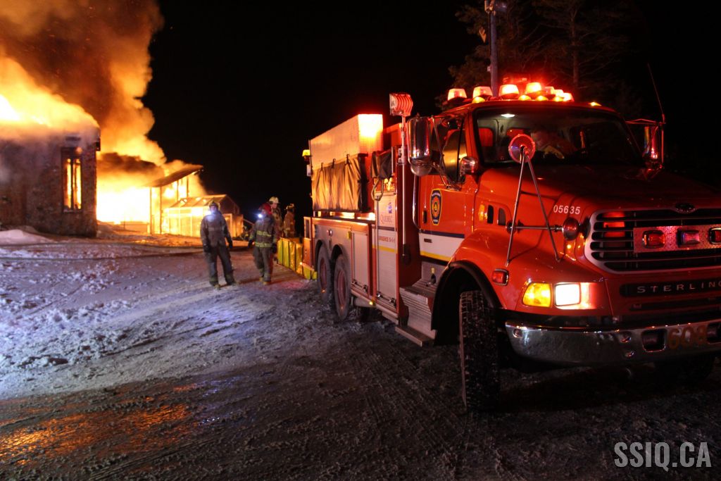 Vers 00h15, le service incendie de Lac Beauport ont demandé l'assistance de Québec avec une citerne pour un violent incendie qui faisait rage au chalet principal du Mont-Tourbillon.