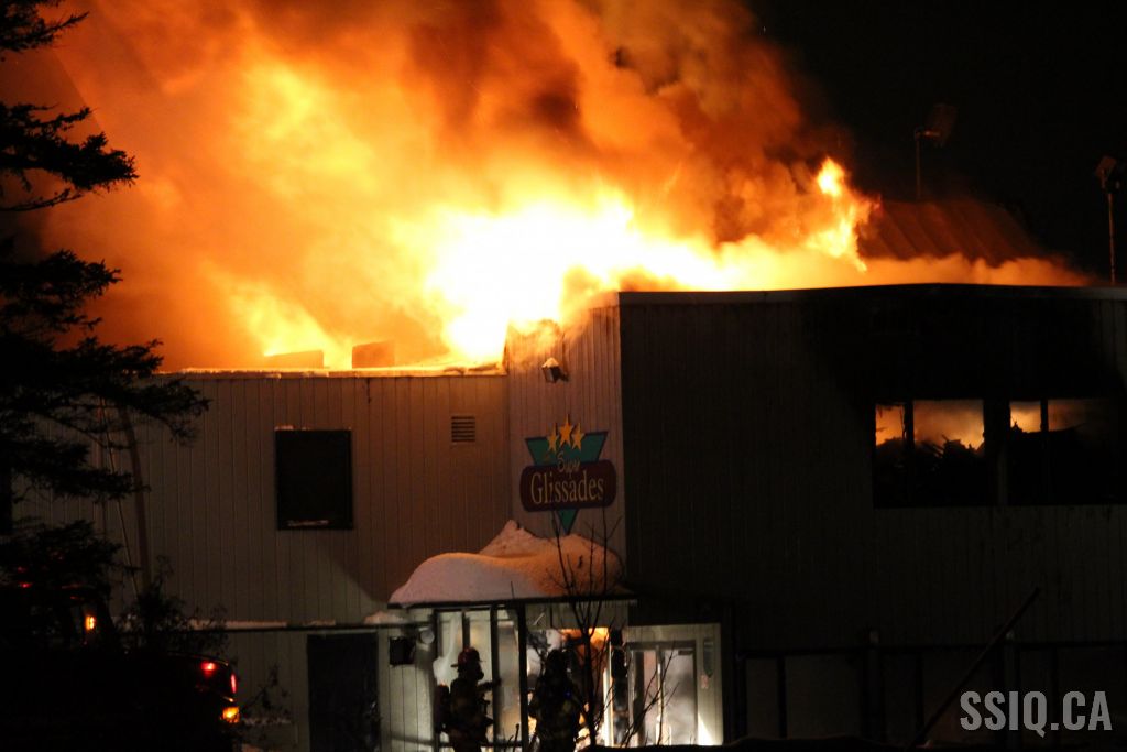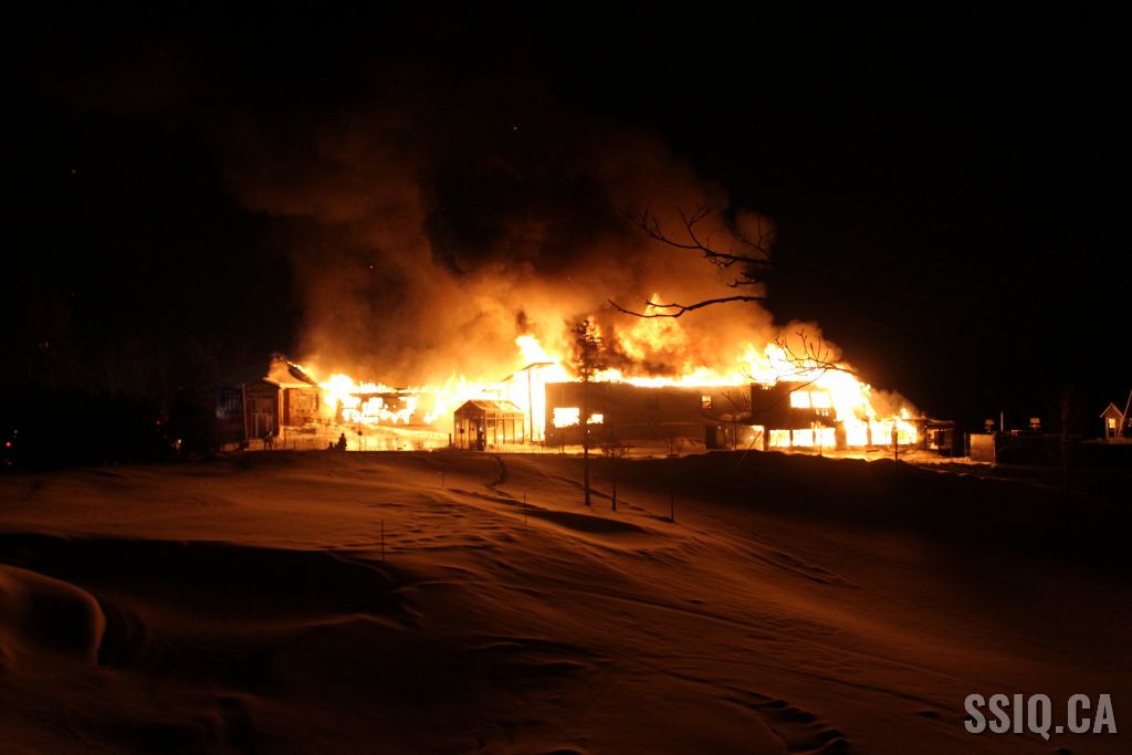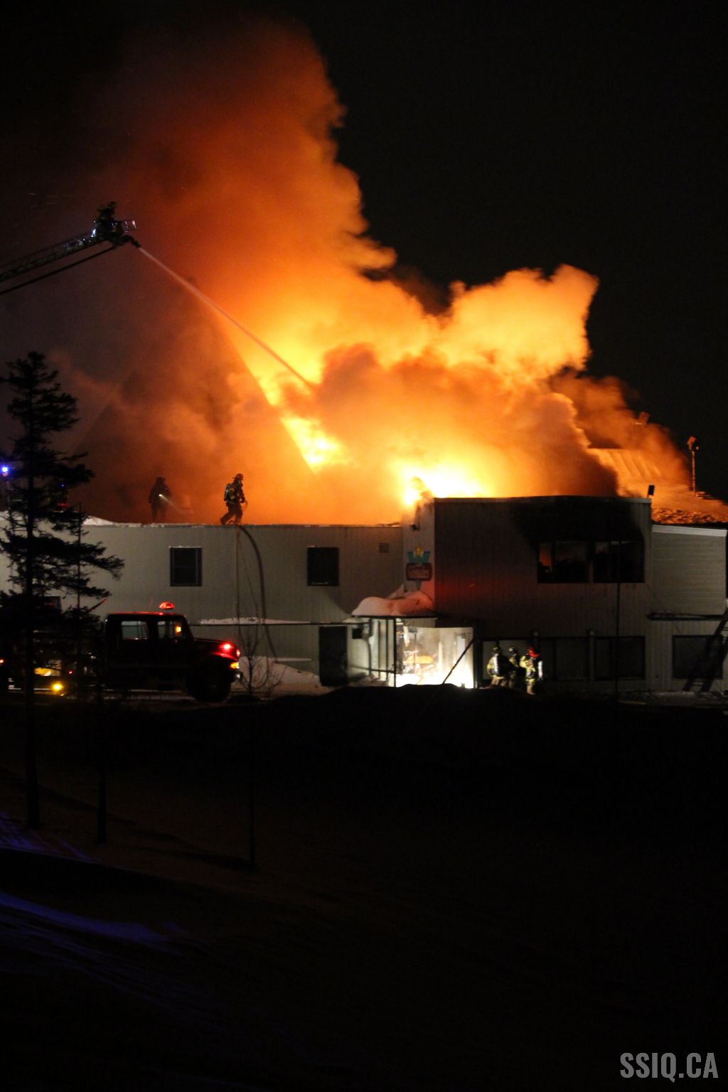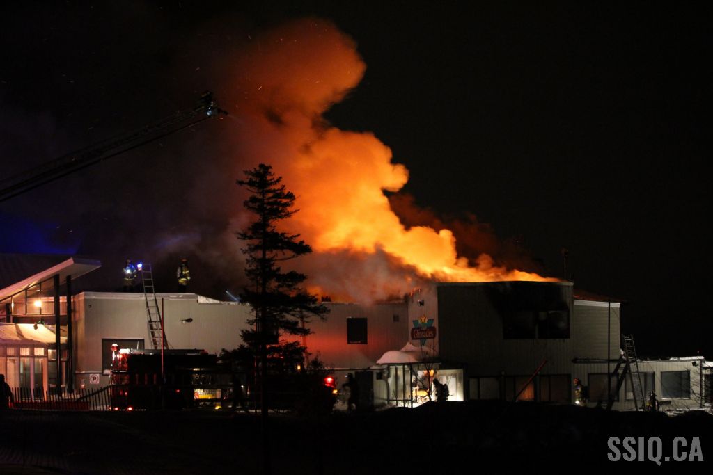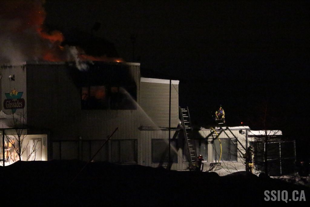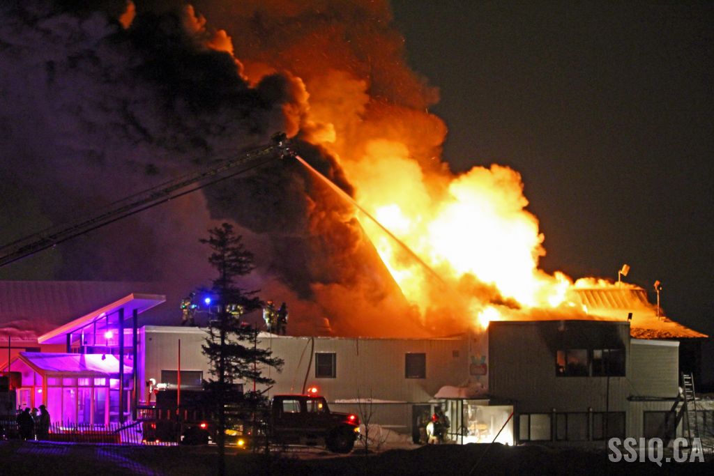 Vers 00h15, le service incendie de Lac Beauport ont demandé l'assistance de Québec avec une citerne pour un violent incendie qui faisait rage au chalet principal du Mont-Tourbillon.