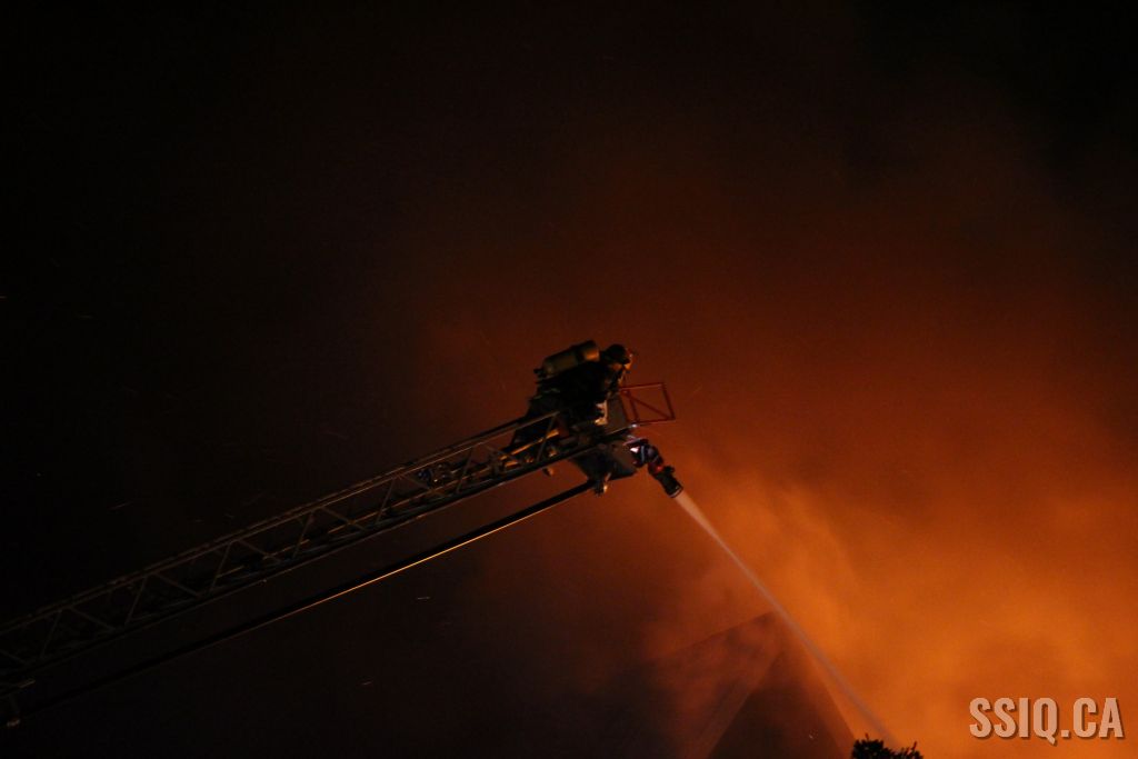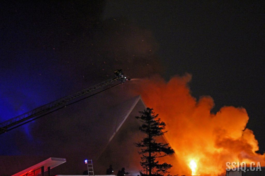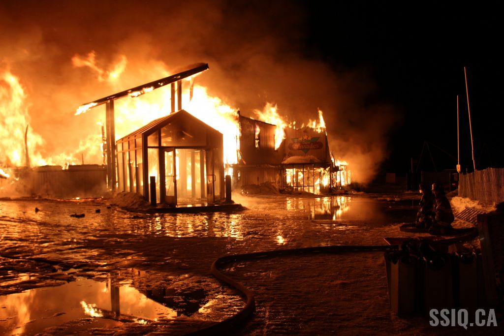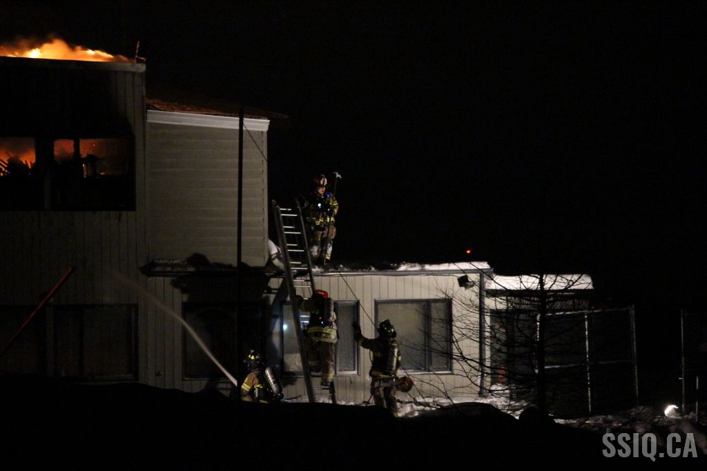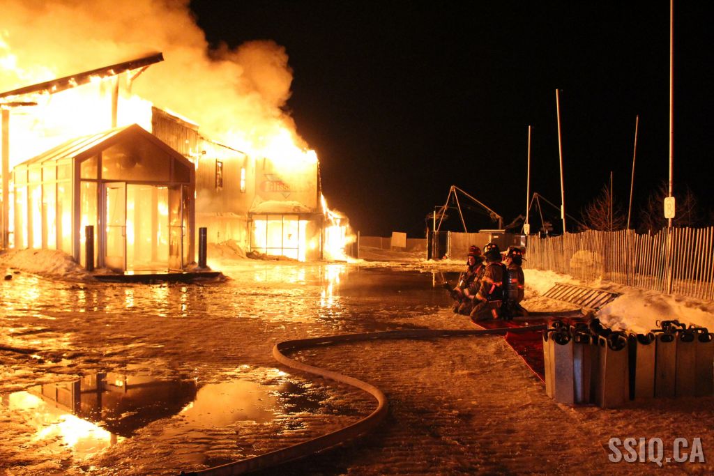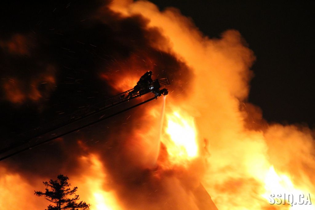 Vers 00h15, le service incendie de Lac Beauport ont demandé l'assistance de Québec avec une citerne pour un violent incendie qui faisait rage au chalet principal du Mont-Tourbillon.