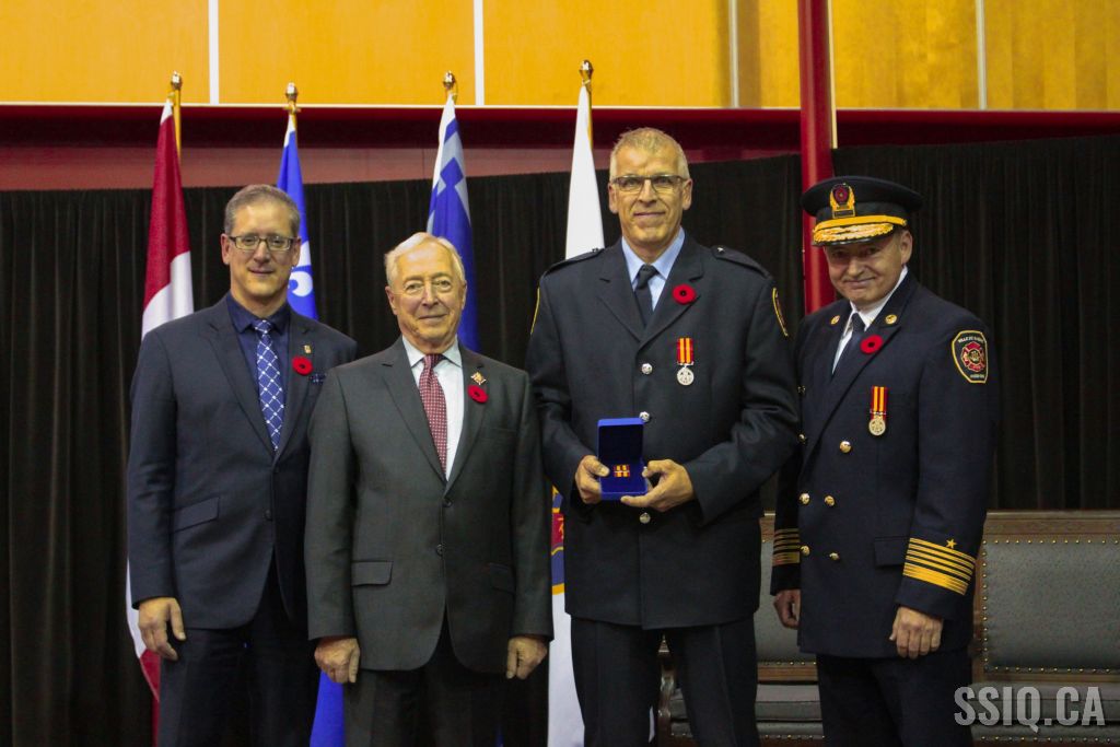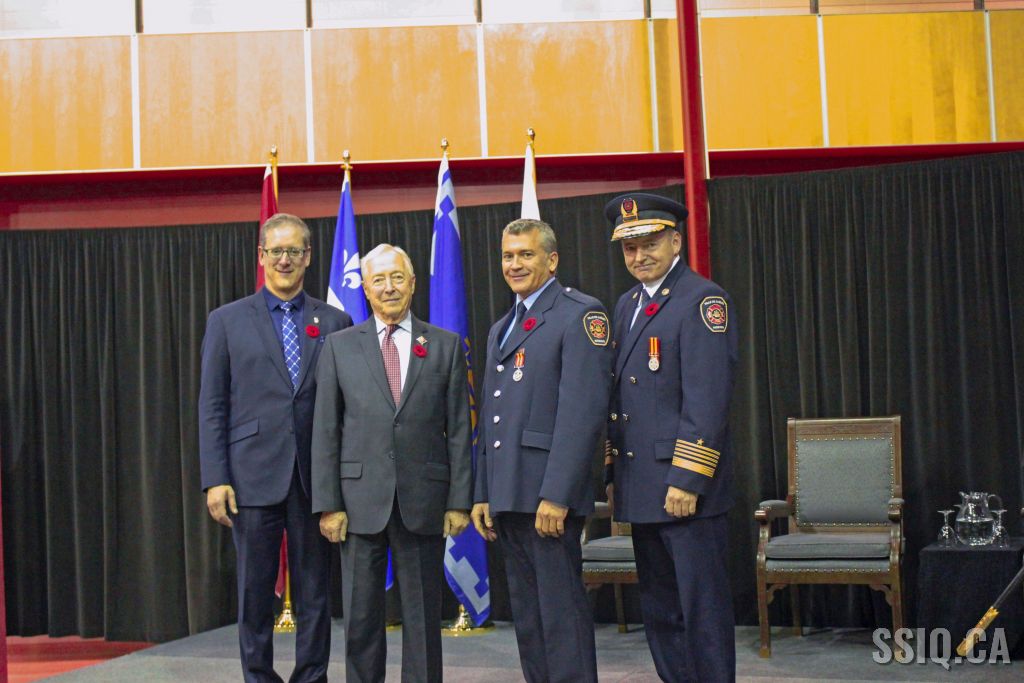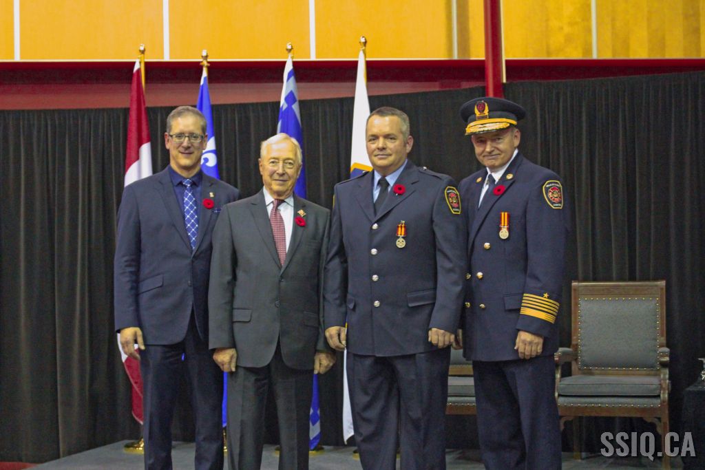 Le Service de Protection Contre l'Incendie de la Ville de Québec a tenu ce 10 novembre une cérémonie visant à remettre une médaille aux pompiers du Service ayant cumulé 20, 30 et 40 ans de service.