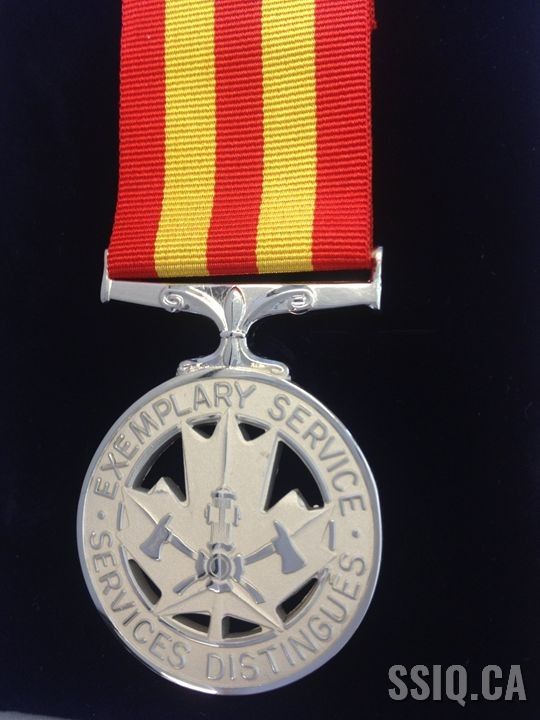 Cette médaille qui est attribuée par le bureau du Gouverneur général du Canada témoigne de longs et exemplaires états de service.