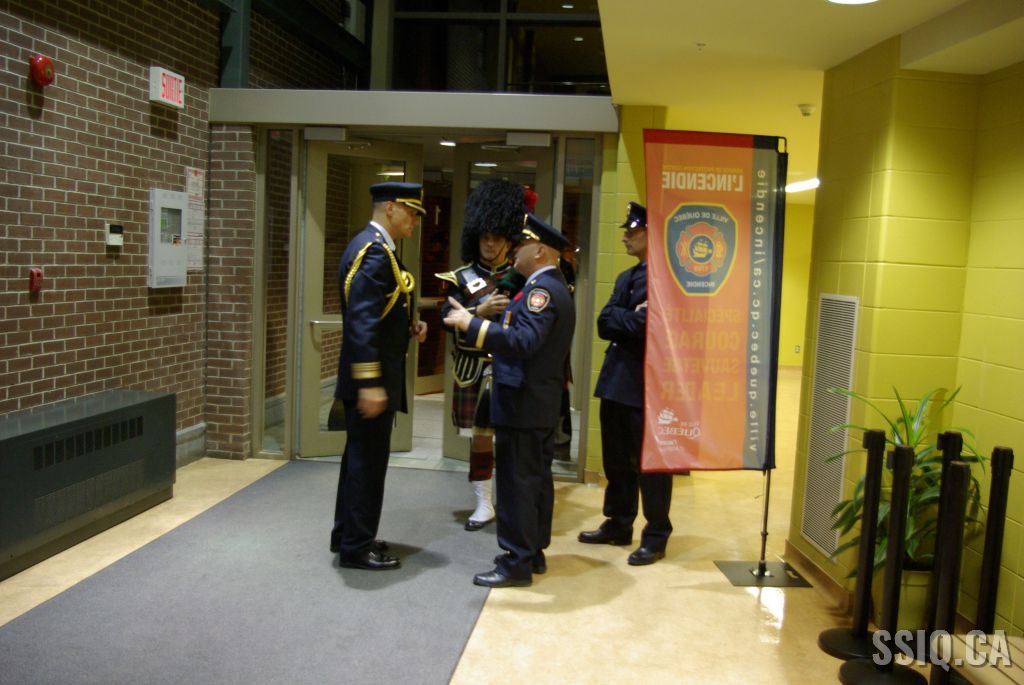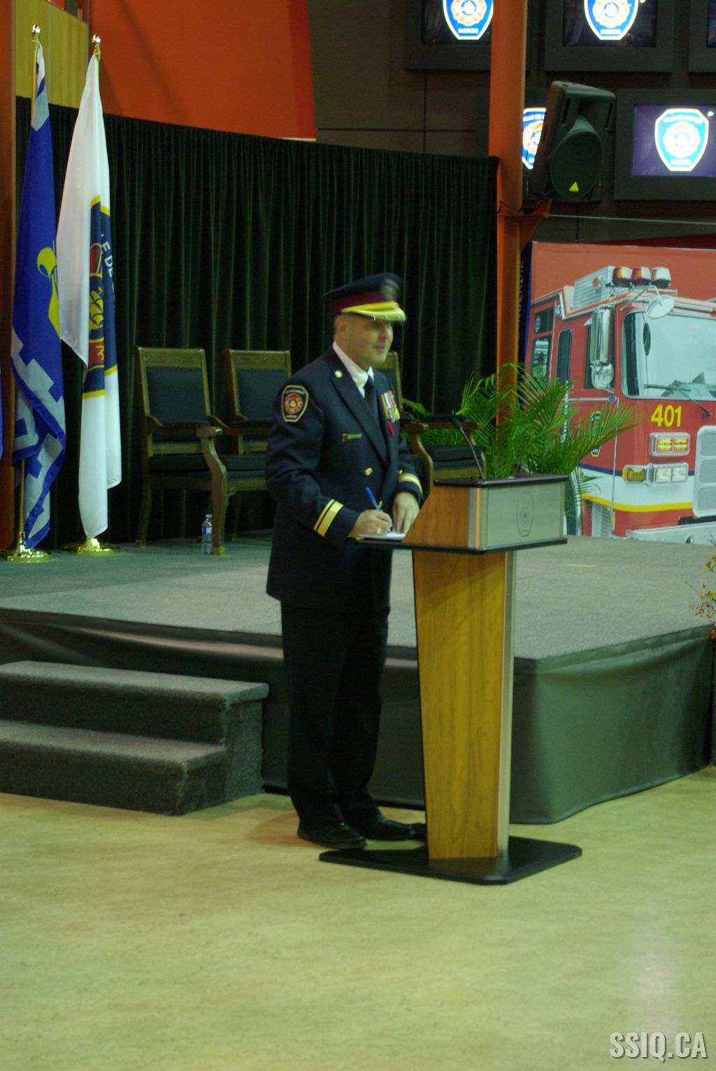 La cérémonie s'est déroulée sous la présidence de l'honorable J. Michel Doyon, Lieutenant-Gouverneur. Une médaille était remise en présence de l'honorable J. Michel Doyon, de Christian Paradis, directeur du SPCIQ et de Patrick Voyer, conseiller municipal, responsable des incendies.