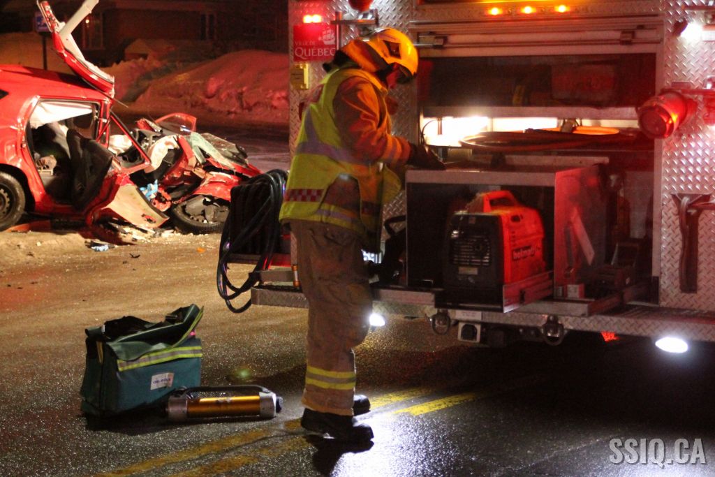 Sur place l'officier du 208 constate que deux victimes sont toujours dans le véhicule. Le 204 est alors également ajouté au dossier pour avoir un deuxième ensemble de mâchoire.