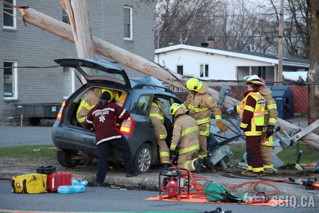 En début de soirée, le 209 est appelé pour un accident de véhicule, la voiture serait entrée en collision avec un poteau électrique. Les plaignants font mention à la centrale qu'une personne est prisonnière de son véhicule et que des fils électriques sont sur le toit de celui-ci. Le véhicule 709 est alors mis en COOP et l'intervention est balancée en Code Mâchoire.