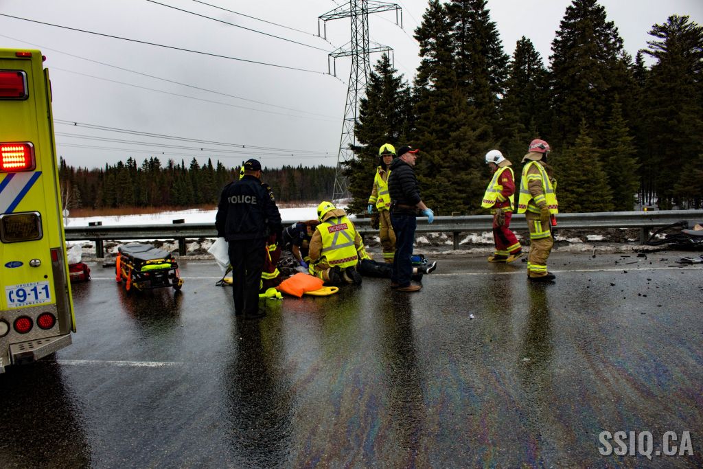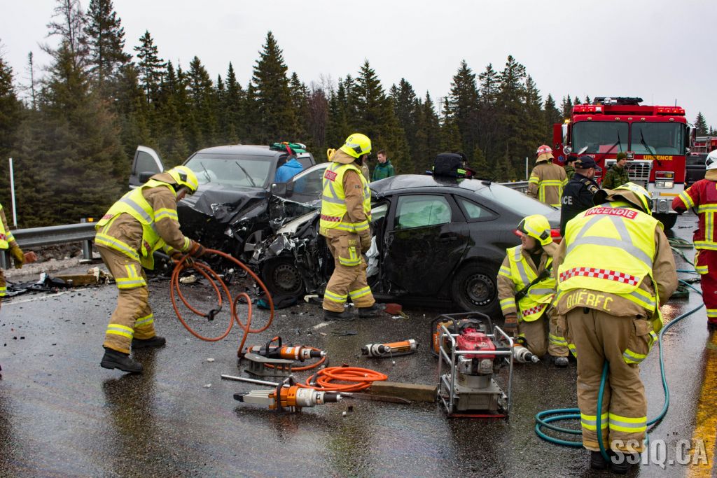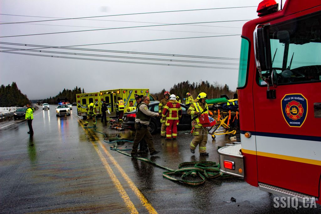 En début d'après-midi, l'équipe des casernes 12 et 6 ont été demandées sur la route de la Bravoure (autoroute 573) en direction nord, après l'avenue Industrielle. Un violent face-à-face venait de faire deux blessés dont un était coincé dans son véhicule. Les outils de désincarcération ont été nécessaires pour évacuer la victime coincée, dont le décès a malheureusement été constaté à son arrivée à l'hôpital.