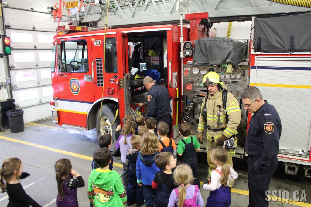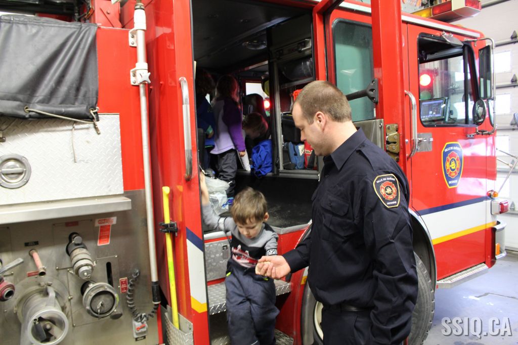 Une école du secteur Duberger a rendu visite à la caserne de pompiers #5. Lors de cette activité, les enfants ont exploré l'ensemble de la caserne et ont pu manipuler de l'équipement en plus d'embarquer dans le camion de pompier. Une démonstration de l'habit de combat a même été faite. L'ensemble de la visite fut très appréciée par les intervenants et les enfants. Après la belle rencontre, un pompier a demandé au groupe quel métier ils voulaient faire plus tard et, sans aucun doute, ils ont tous répondu "pompier"! Des camions de pompier pour bricolage ont été remis ainsi qu'un cahier de prévention Croc-feu.