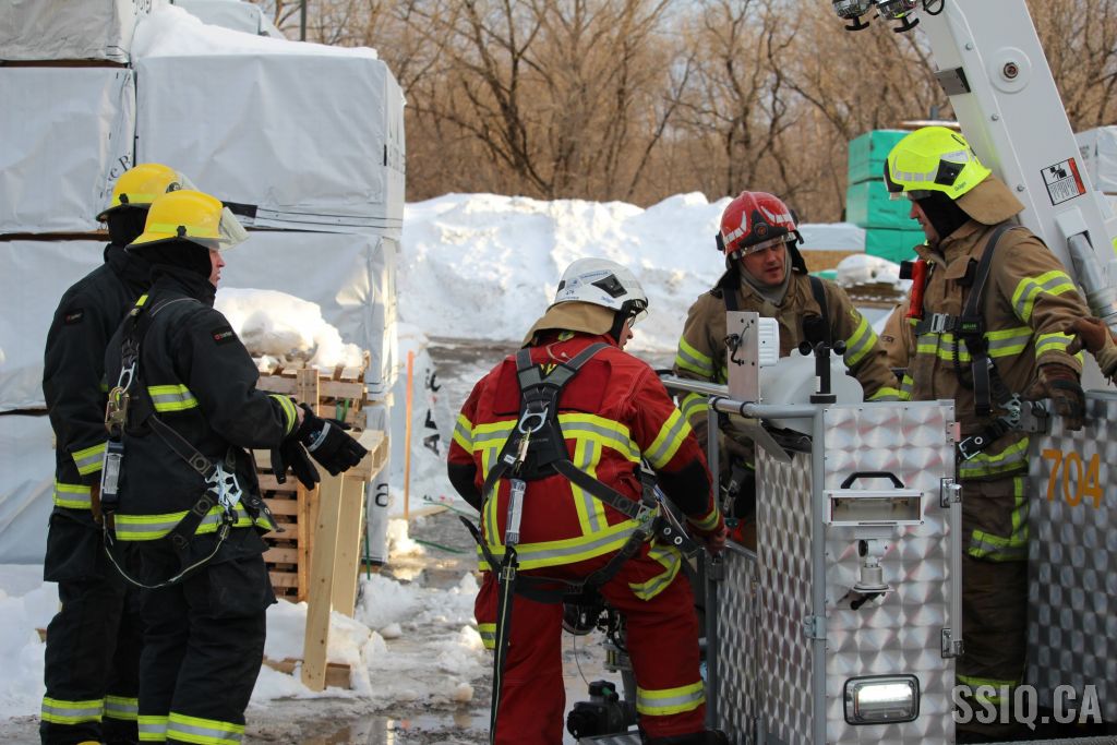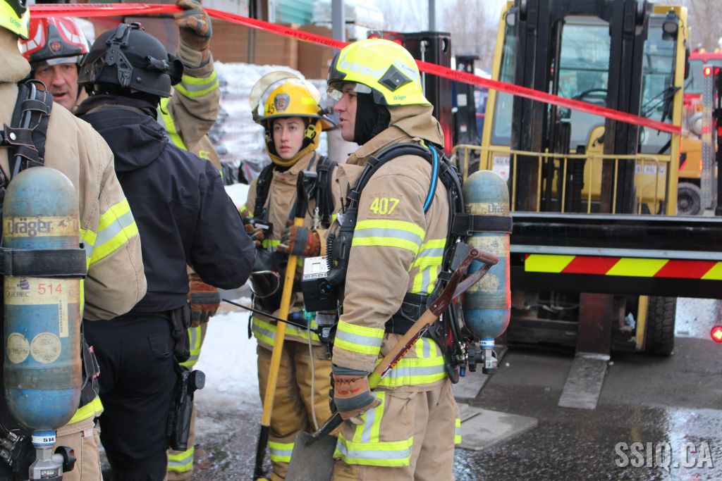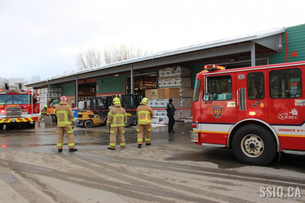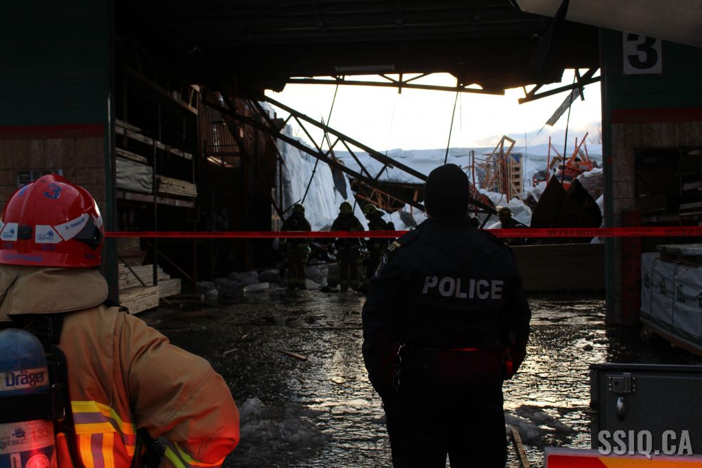 Le toit d'un entrepôt de grande superficie de l'entreprise Rona a exigé un déploiement considérable de ressources. Bien que, initialement, le plaignant croyait qu'il n'y avait personne à l'intérieur, une discussion entre les responsables n'a pu garantir cette information à 100%. Les ressources spécialisées en espace clos et un maître-chien du SPVQ ont donc été dépêchées sur les lieux. Après de méticuleuses vérification, il a été confirmé que personne n'était coincé sous les débris.