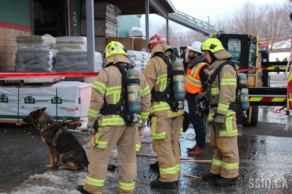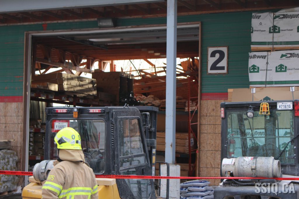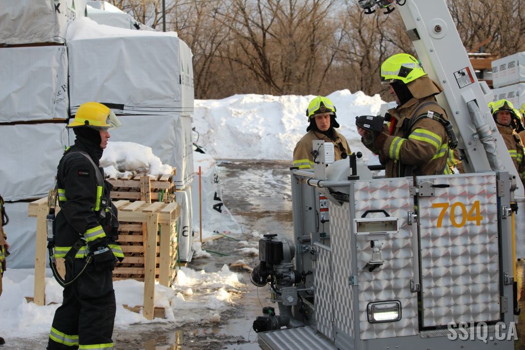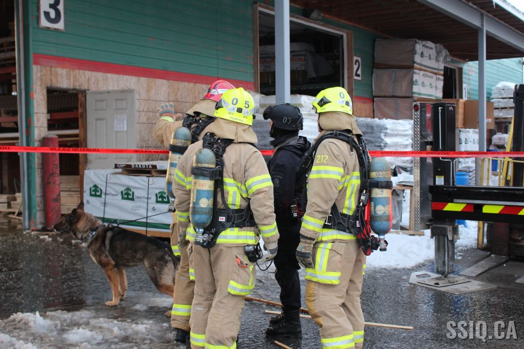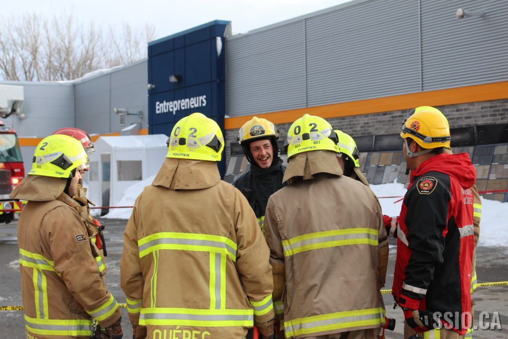 Le toit d'un entrepôt de grande superficie de l'entreprise Rona a exigé un déploiement considérable de ressources. Bien que, initialement, le plaignant croyait qu'il n'y avait personne à l'intérieur, une discussion entre les responsables n'a pu garantir cette information à 100%. Les ressources spécialisées en espace clos et un maître-chien du SPVQ ont donc été dépêchées sur les lieux. Après de méticuleuses vérification, il a été confirmé que personne n'était coincé sous les débris.