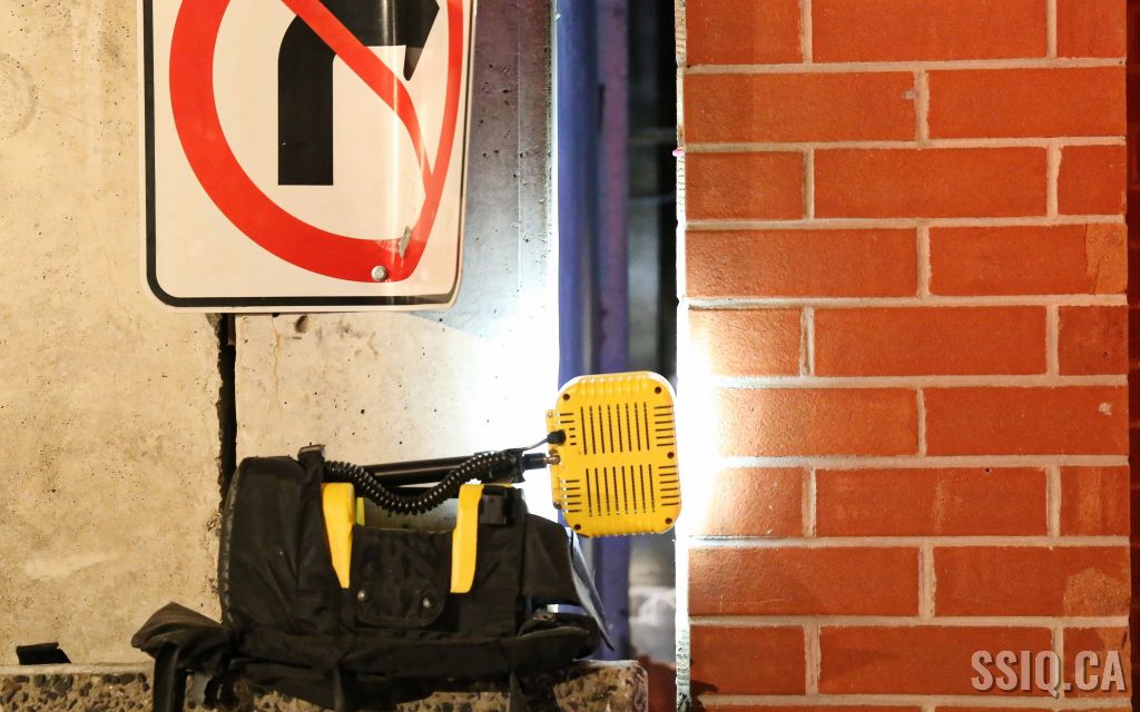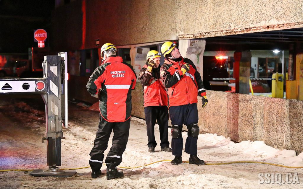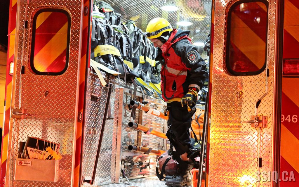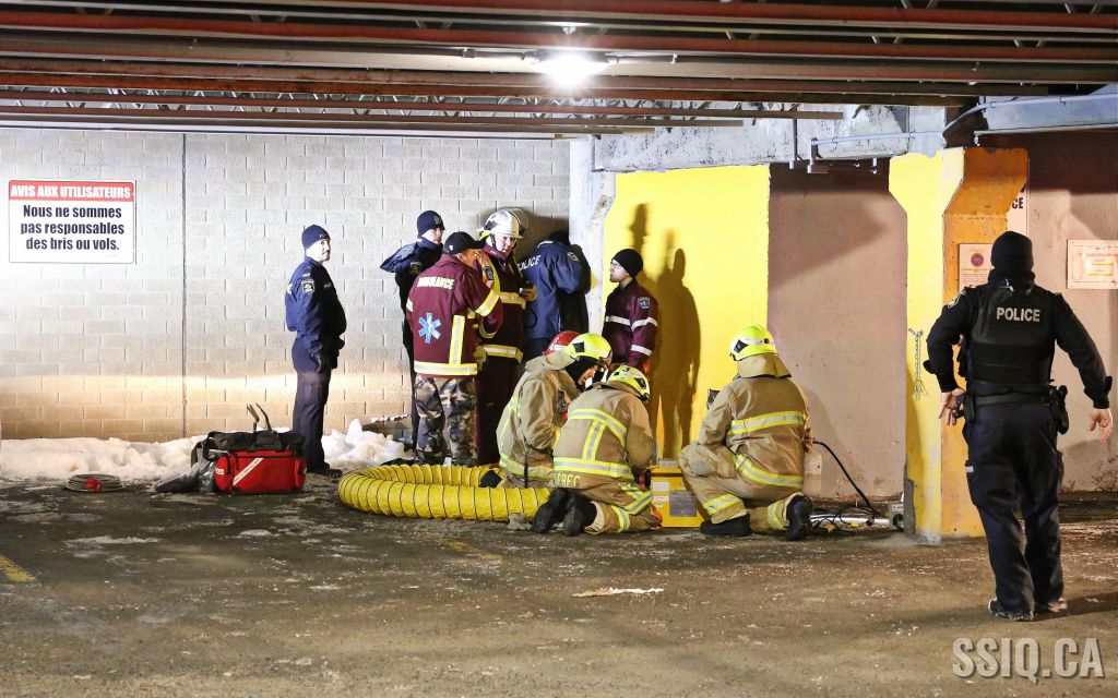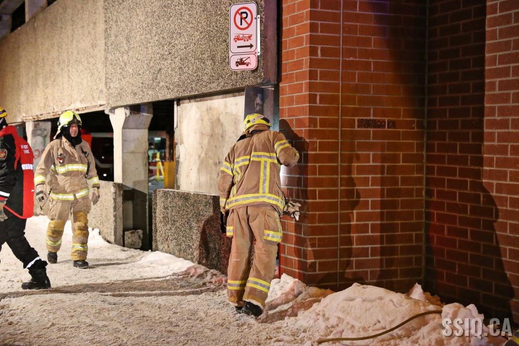 L'appel provient des policiers qui, en patrouillant, ont localisé un homme coincé entre deux bâtiments avec un espace de 6 pouces seulement. La victime était consciente et semblait être en hypothermie. Pendant que les équipes de la caserne 2 établissaient une stratégie d'approche par le toit, les hommes des casernes 3 et 13 essayaient de progresser par l'intérieur d'un bâtiment en y perçant un trou pour sortir la victime. Tout au cours des opérations, les intervenants ont réchauffé du mieux possible ceple-ci avec une chaufferette d'appoint. Vers 23h30, le PC confirme que les pompiers ont réussi à faire un trou permettant d'extirper l'infortunée de sa fâcheuse position.