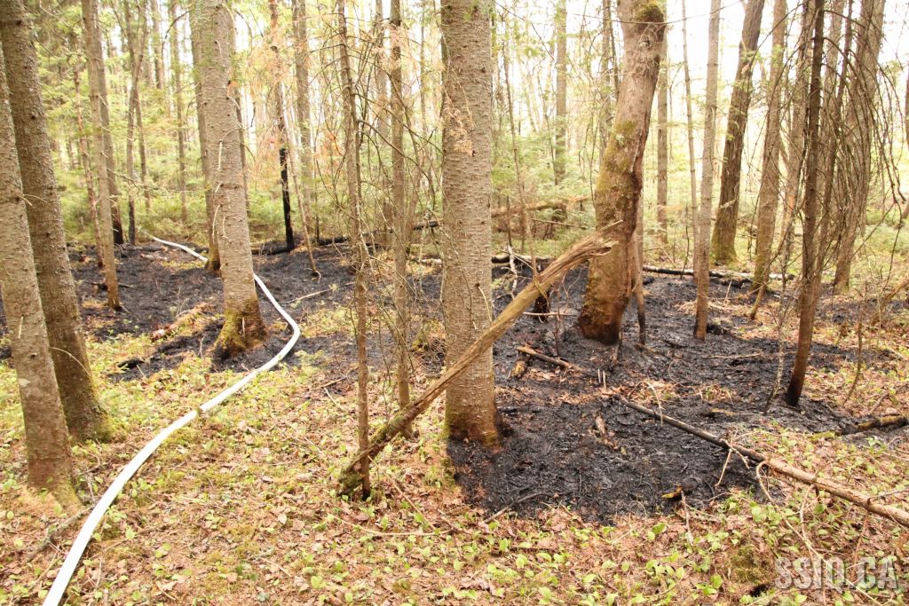 L'appel entre par un citoyen qui mentionne voir de la fumée dans le bois derrière l'adresse. Sur place le 311 est informé par un résident qu'une personne a perdu le contrôle de son feu de joie. Les équipes vont alors dans le bois avec les équipements pour combattre l'incendie.