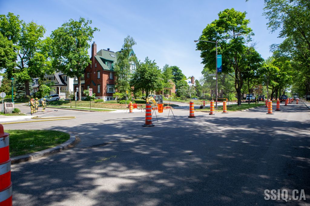 En fin d'avant-midi, une fuite de gaz naturel a nécessité l'intervention des pompiers à l'intersection de la Grande Allée Ouest et de l'avenue des Braves, dans l'arrondissement La Cité-Limoilou.