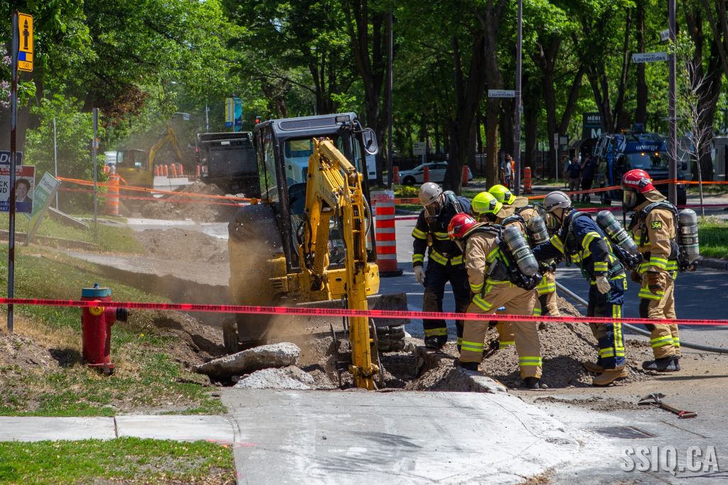 Un appel a été logé à la centrale 911 par des employés d'un chantier de construction. Les détails font mention d'une conduite de gaz souterraine accrochée par une pelle mécanique.