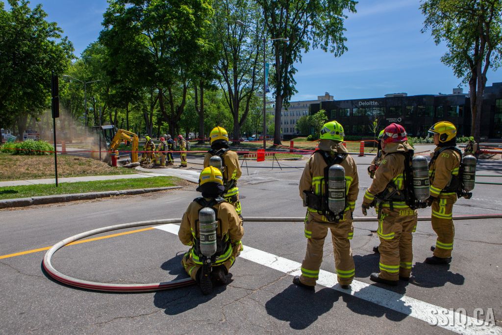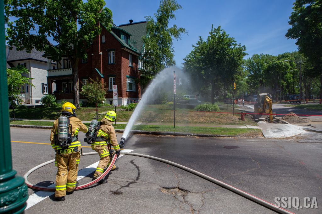 En arrivant sur les lieux, le chef Richard (122) confirme la fuite. La compagnie Énergir est alors demandée sur place pour participer aux opérations. Des jets sont déployés par mesure de sécurité.