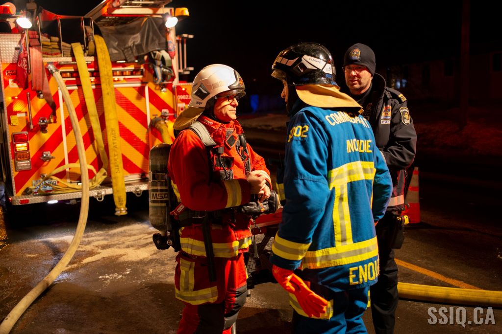 L'appel est entré à la centrale 911 par un citoyen. Les détails font mention de garage en feu derrière une résidence. Arrivé sur place, l'officier du 212 confirme le feu éclaté derrière un garage double de 20 x 30 pieds, l'intervention sera alors nécessaire.
