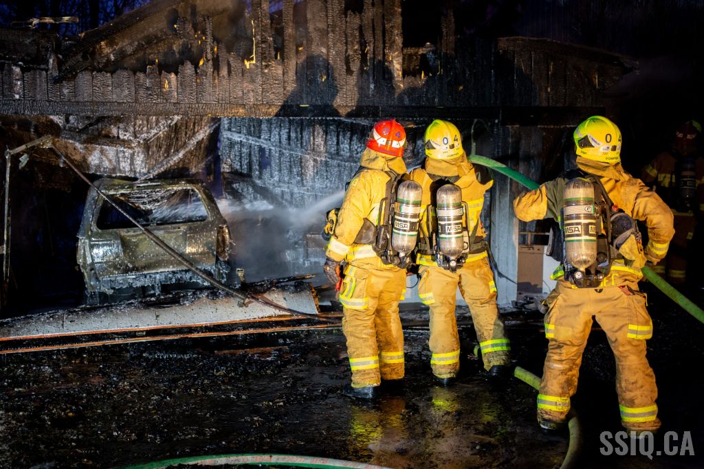 En fin de journée, un violent incendie dans un garage à nécessité l'intervention des pompiers au 7273 rue des Loutres, dans l'arrondissement Charlesbourg.