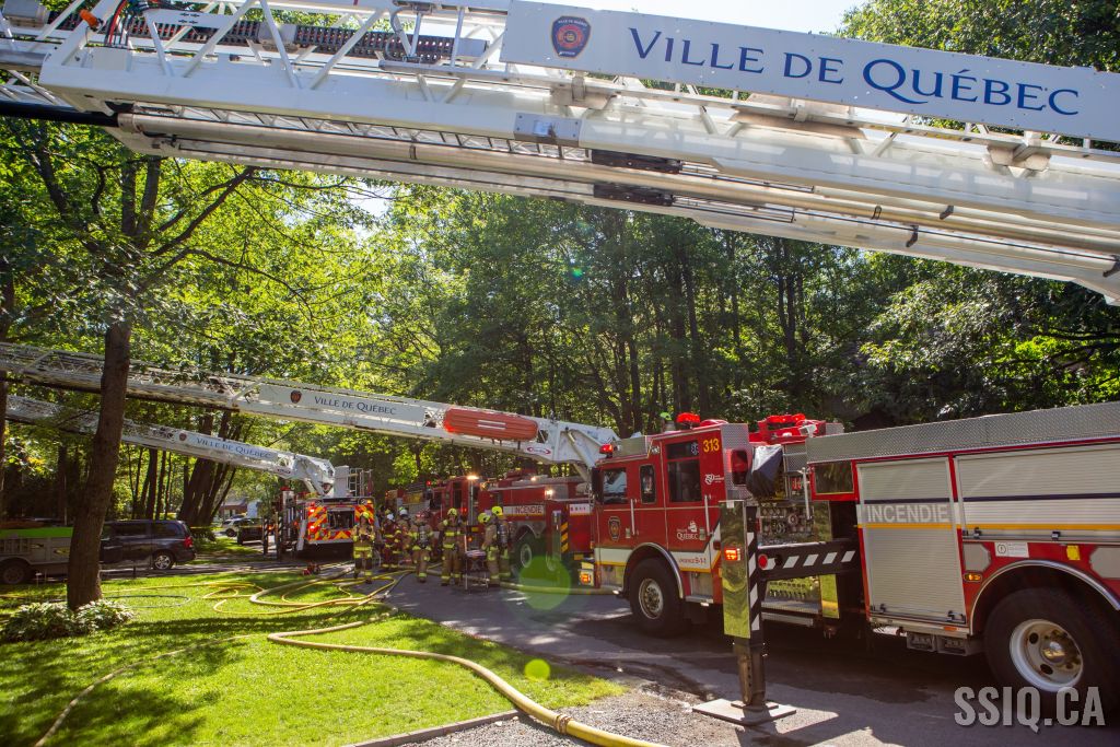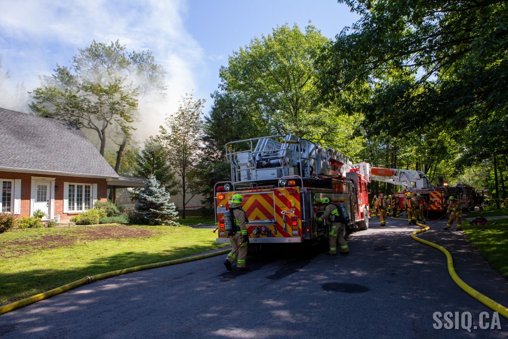 La résidence possède un plafond cathédrale. Les flammes sont en progression dans cette structure. Devant l'aggravation de la situation, une 2e alarme est demandée.